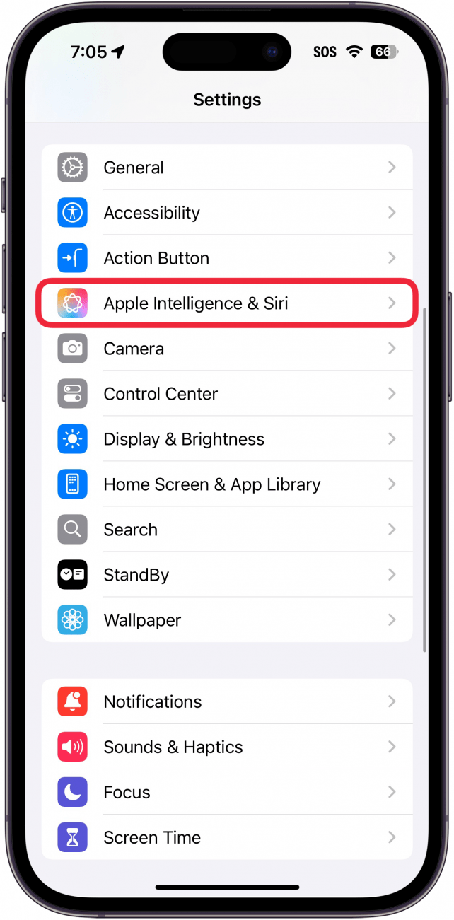 - 打開設置應用程序,然後選擇Apple 智能和 Siri。