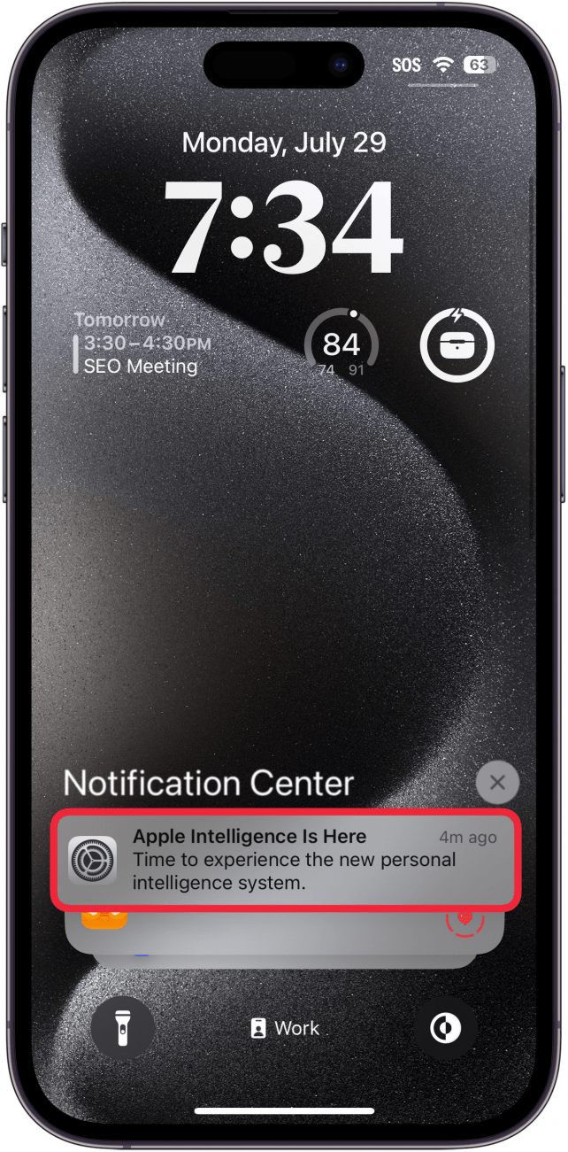 - 當 Apple Intelligence 準備好用於您的 iPhone 時,您會收到通知。