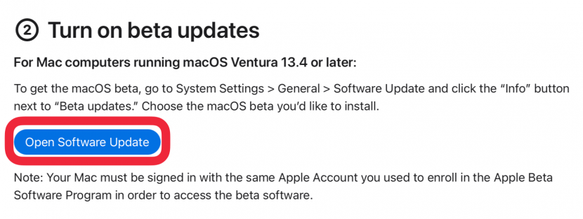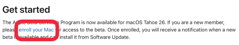 - 您將看到公共測試版指南。向下滾動,然後在“開始”下單擊註冊您的 Mac。