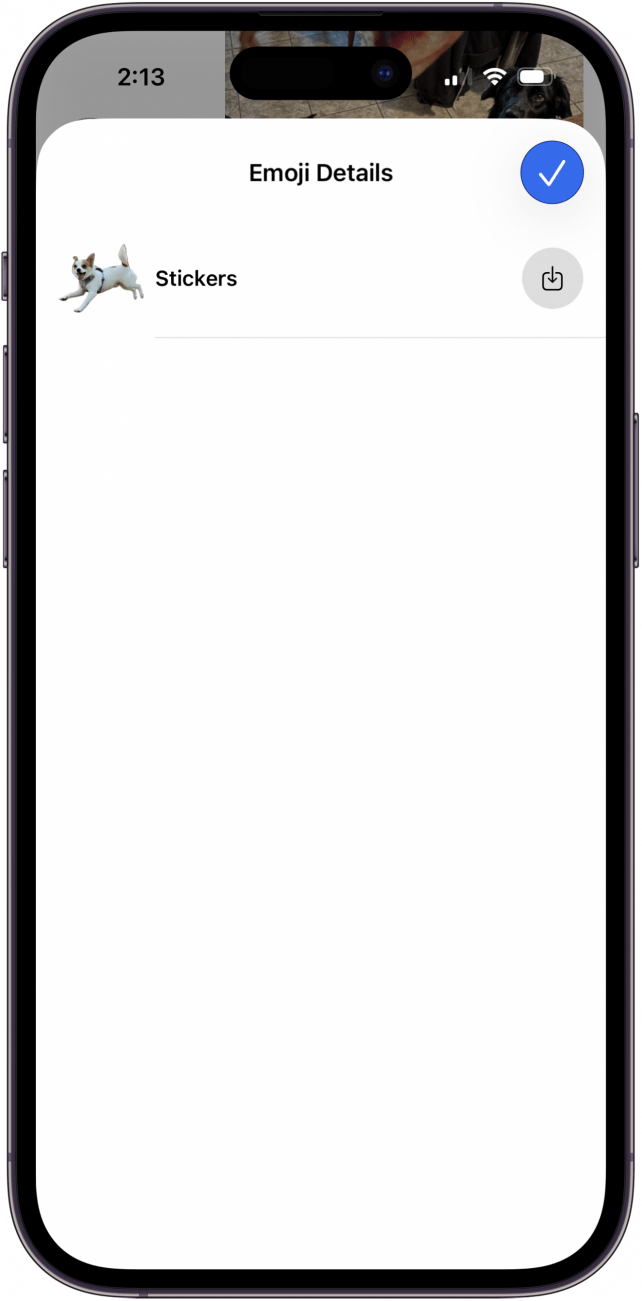 在 iOS 18 更新之前,保存某人發送給您的炫酷貼紙的唯一方法是要求他們向您發送圖像或截取屏幕截圖,然後在您的手機中創建它。現在,只需長按某人發送給您的貼紙,點擊表情符號詳細信息,然後點擊下載圖標。