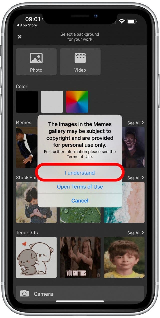 - 第一次使用它時,彈出窗口會警告您此應用程序中的圖像可能受版權保護。輕敲我明白。