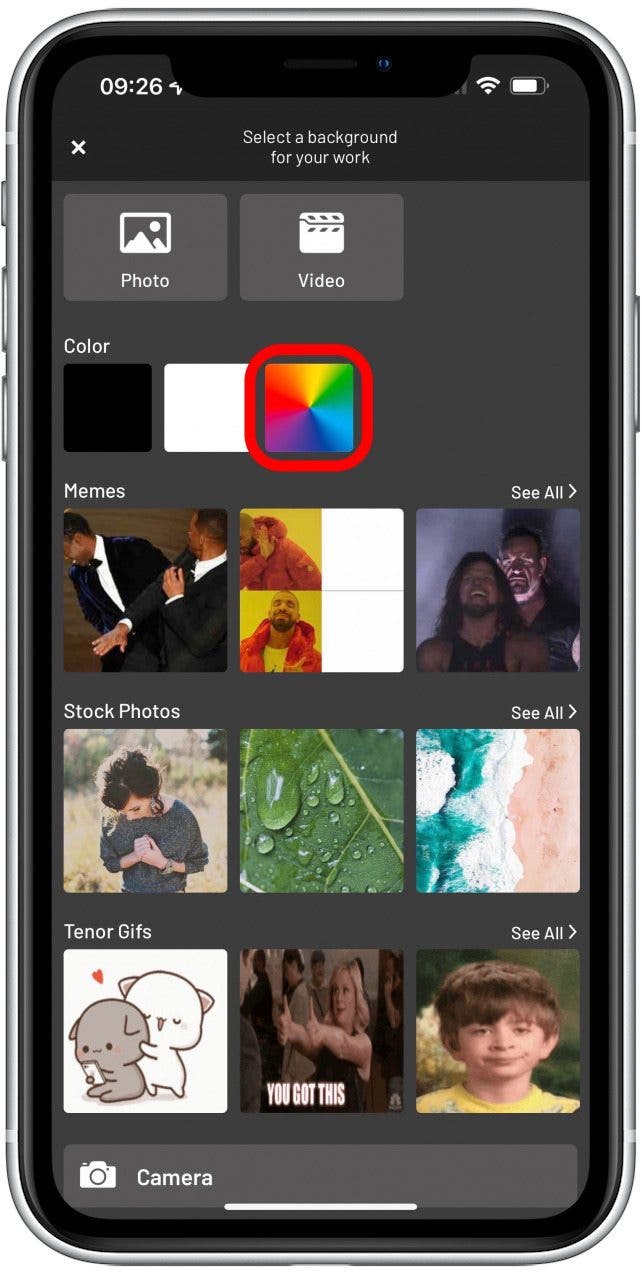 - 您還可以點擊色輪以獲得純色背景,包括全白或全黑。