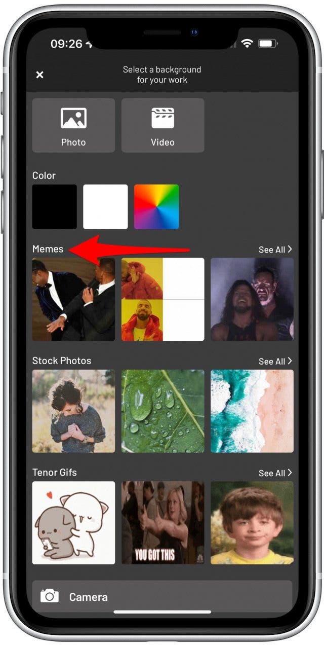 - 在頂部,您還可以選擇 iPhone 中的照片或視頻。