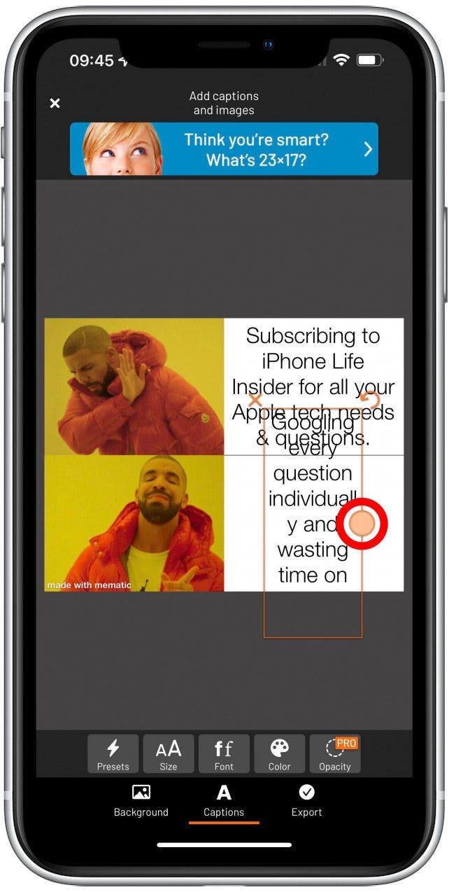- 您還可以使用預設、大小、字體和顏色進一步自定義模因。