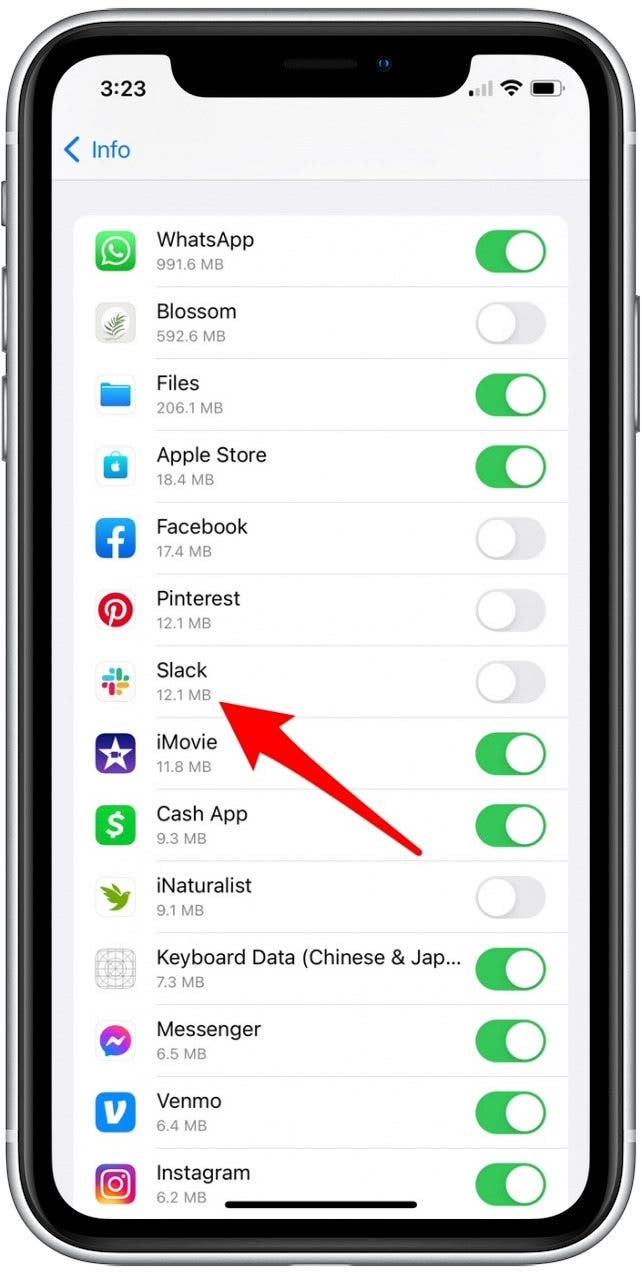 - 如果您不想將應用程序同步到 iCloud,請點擊切換按鈕將其禁用。 (禁用時切換為灰色。)