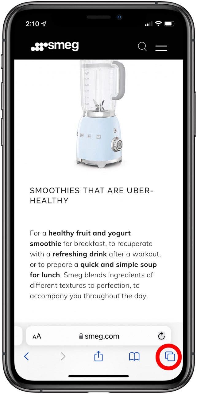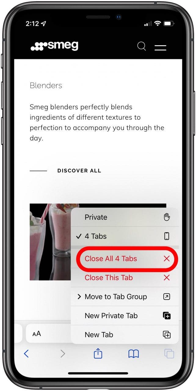 如果您不想單獨瀏覽並關閉每個 Safari 選項卡,而是更願意關閉所有打開的選項卡並重新開始,該怎麼辦?我們已經回顧過,但您也可以通過三個簡單的步驟關閉 iPhone 上的所有 Safari 選項卡!為了更多偉大教程,查看我們的免費。以下是一次性關閉 Safari 標籤頁的方法: