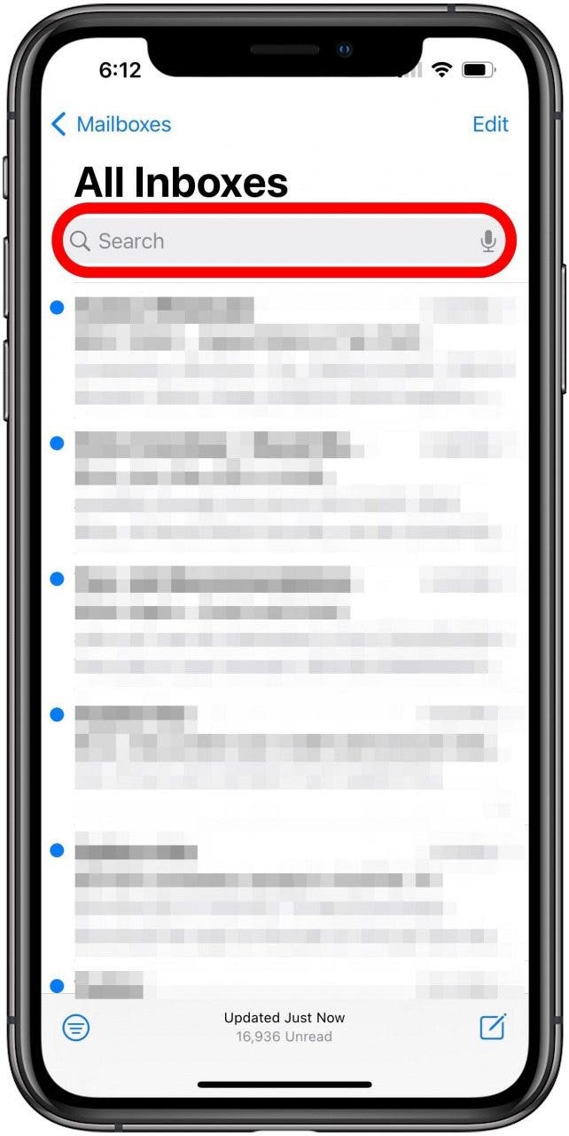 - 點擊搜索欄。如果沒有出現,請點擊並拖動 在消息列表的下方。