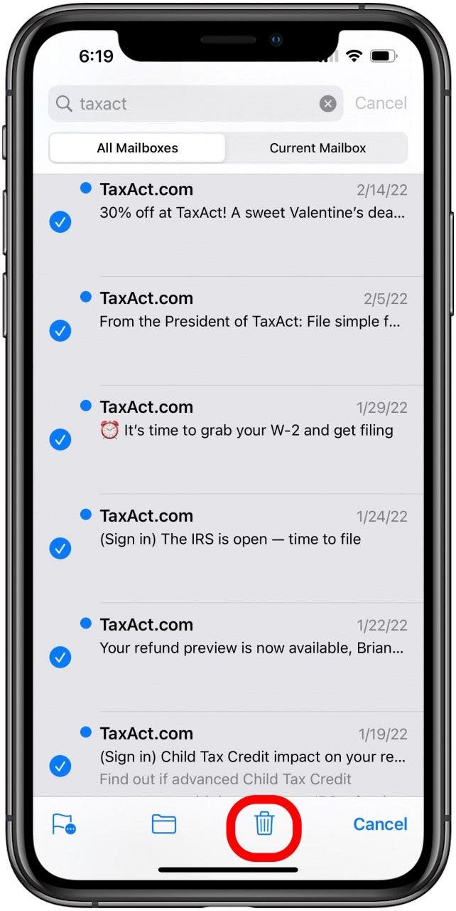 在本練習中,我選擇刪除來自 TaxAct 的所有電子郵件,該公司是我過去使用過的公司,但現在不再使用了。我讓他們在沒有取消訂閱的情況下花了太長時間,導致大量的促銷電子郵件堆積起來。我將向您展示如何找到所有這些內容並輕鬆選擇它們進行刪除。完成此操作後,請務必註冊了解有關管理數字生活的更多指南。