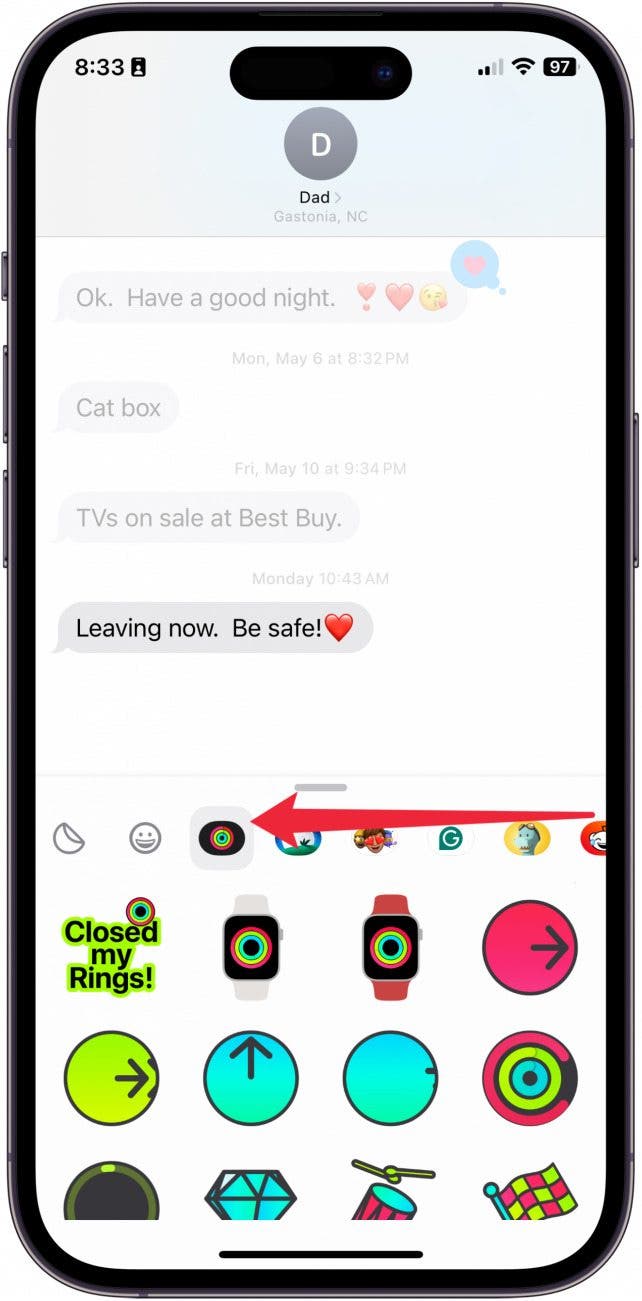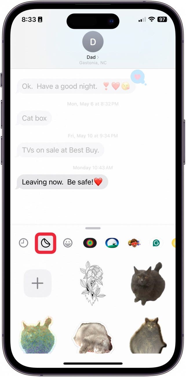 - 如果您滾動瀏覽頂部的其他按鈕,您可能會發現其他貼紙,您可以根據您下載到 iPhone 的應用程序添加這些貼紙。