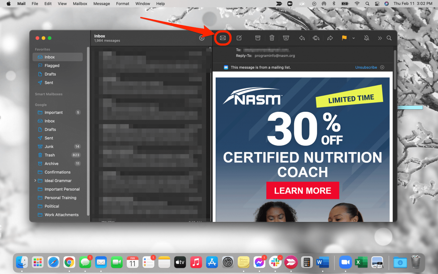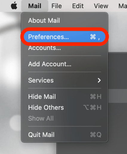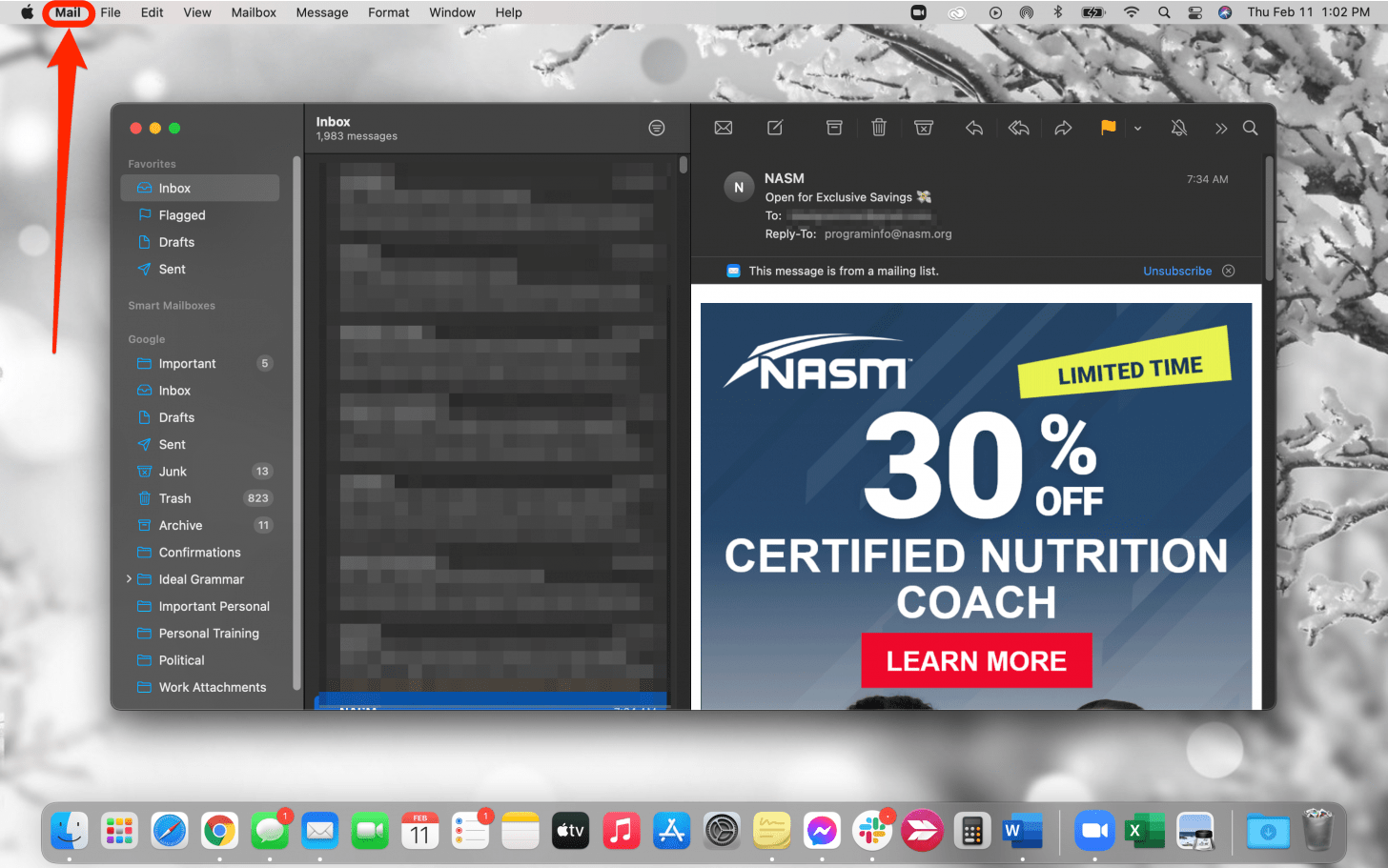 - 在屏幕頂部的菜單欄中,單擊郵件。