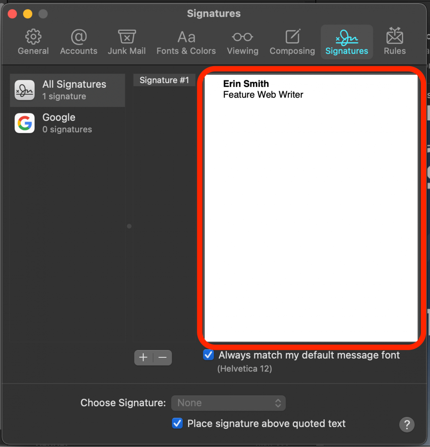 - 要自定義您的簽名,請單擊右側的窗口並輸入您自己的簽名。