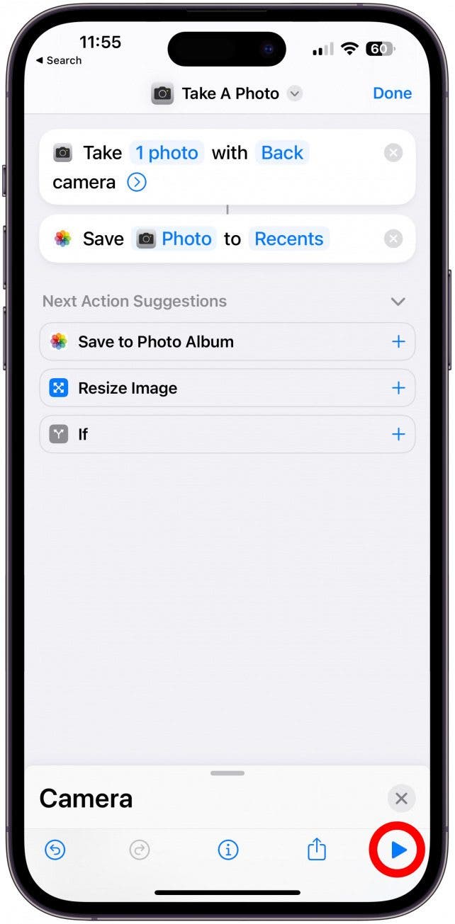 - 點擊播放按鈕右下角來測試這個快捷方式。