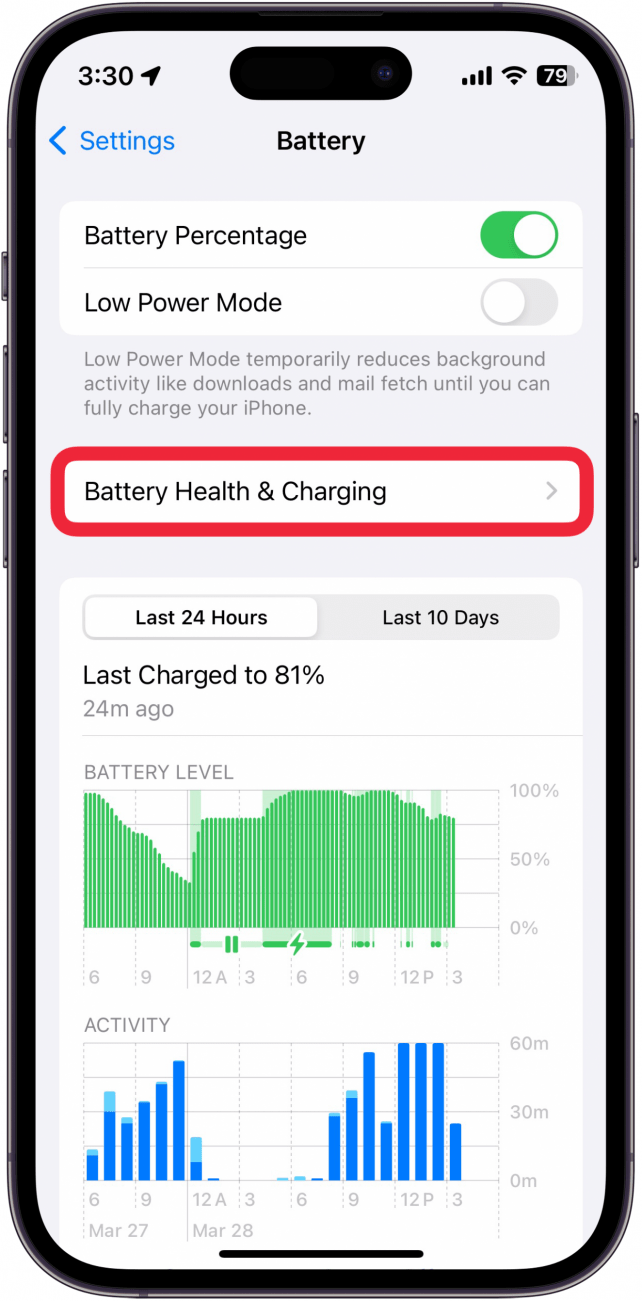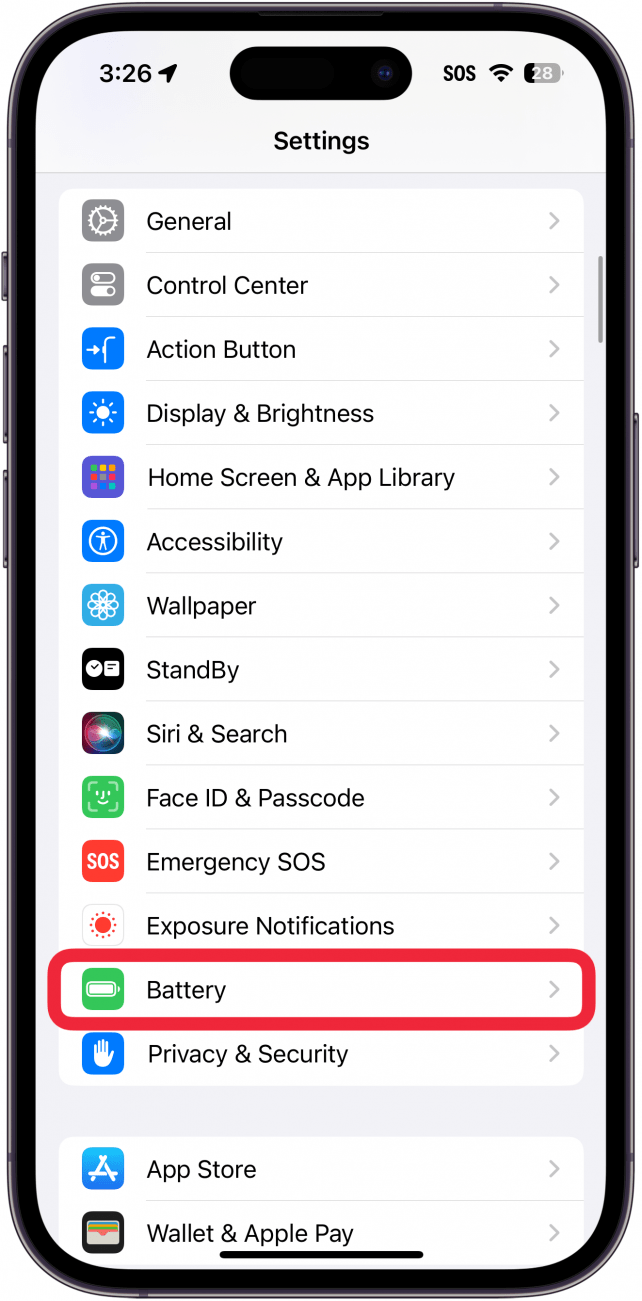 什麼是優化電池充電?啟用此功能後,在某些情況下,您的 iPhone 將延遲充電超過 80%。建議這樣做以延長電池壽命,因為它可以防止電池更快退化。如果您想知道如何讓 iPhone 的電池保持健康,我的第一個建議是啟用“優化電池充電”。但是,如果您需要將 iPhone 快速充滿電,可以選擇暫時啟用它。有關更多 iPhone 電池提示,例如“的答案”“,註冊我們的通訊。現在,以下是禁用優化電池充電的方法: