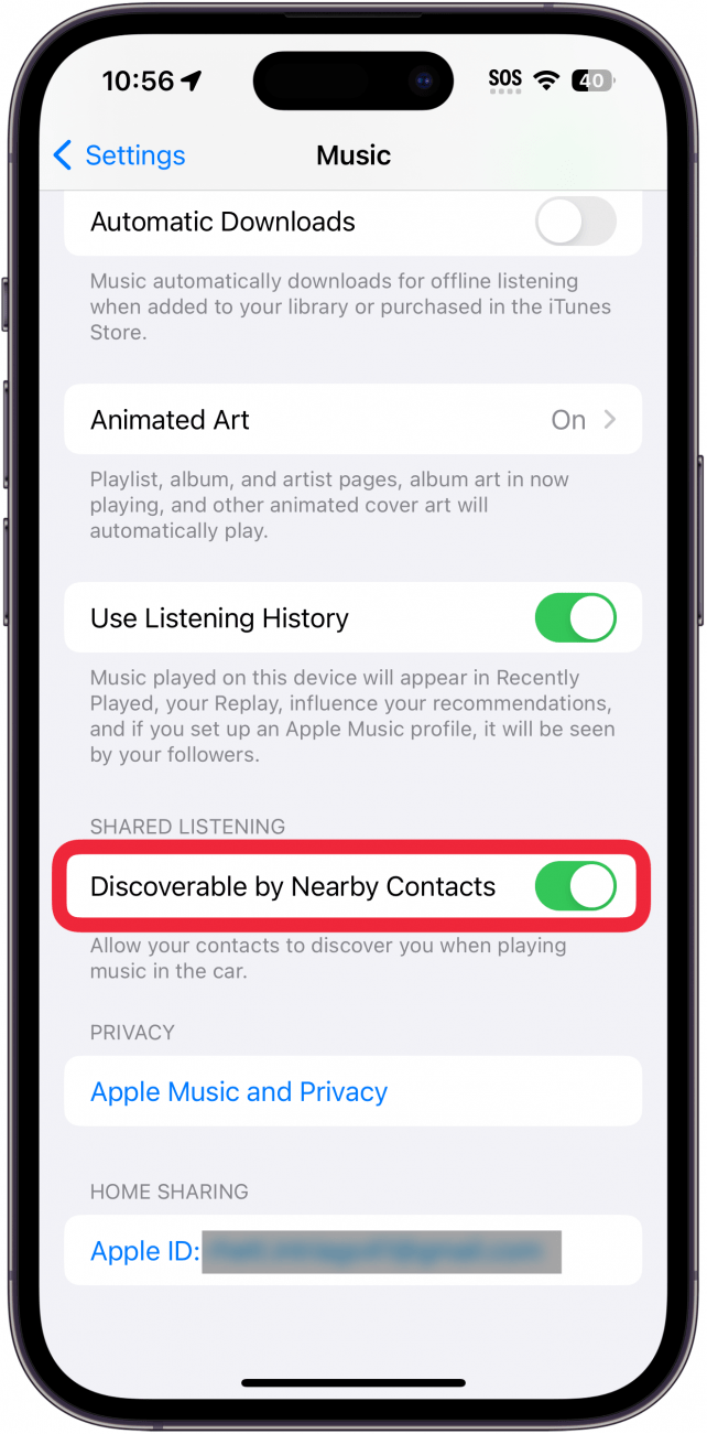 - 向下滾動並點擊旁邊的切換按鈕可被附近的聯繫人發現。