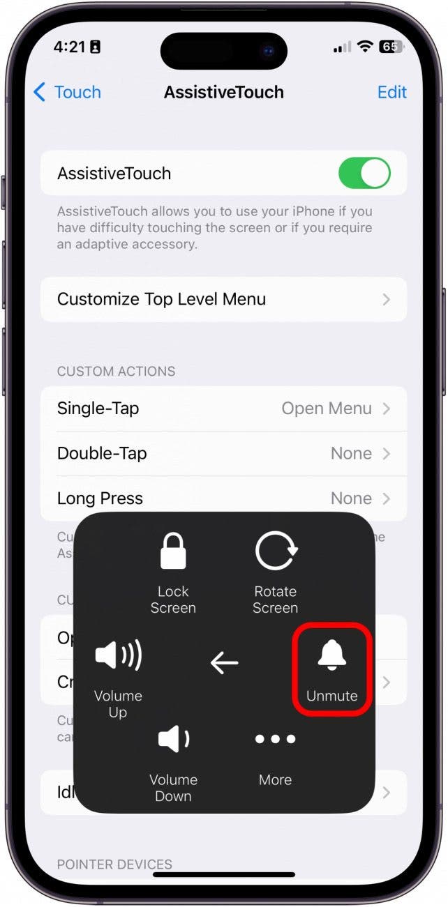 如果 iPhone 側面的環形開關損壞或停止工作,您可以使用輔助功能設置中的 AssistiveTouch 禁用和啟用靜音模式。