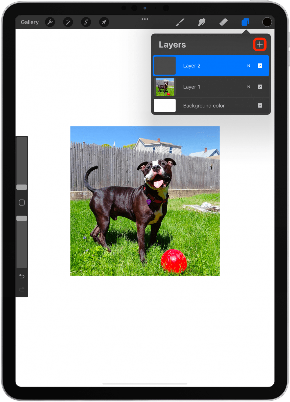 - 點擊+ 圖標添加一個新層。確保它位於您的照片所在圖層的上方;您可以拖動它來重新定位。