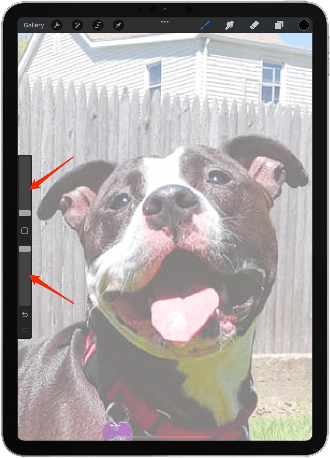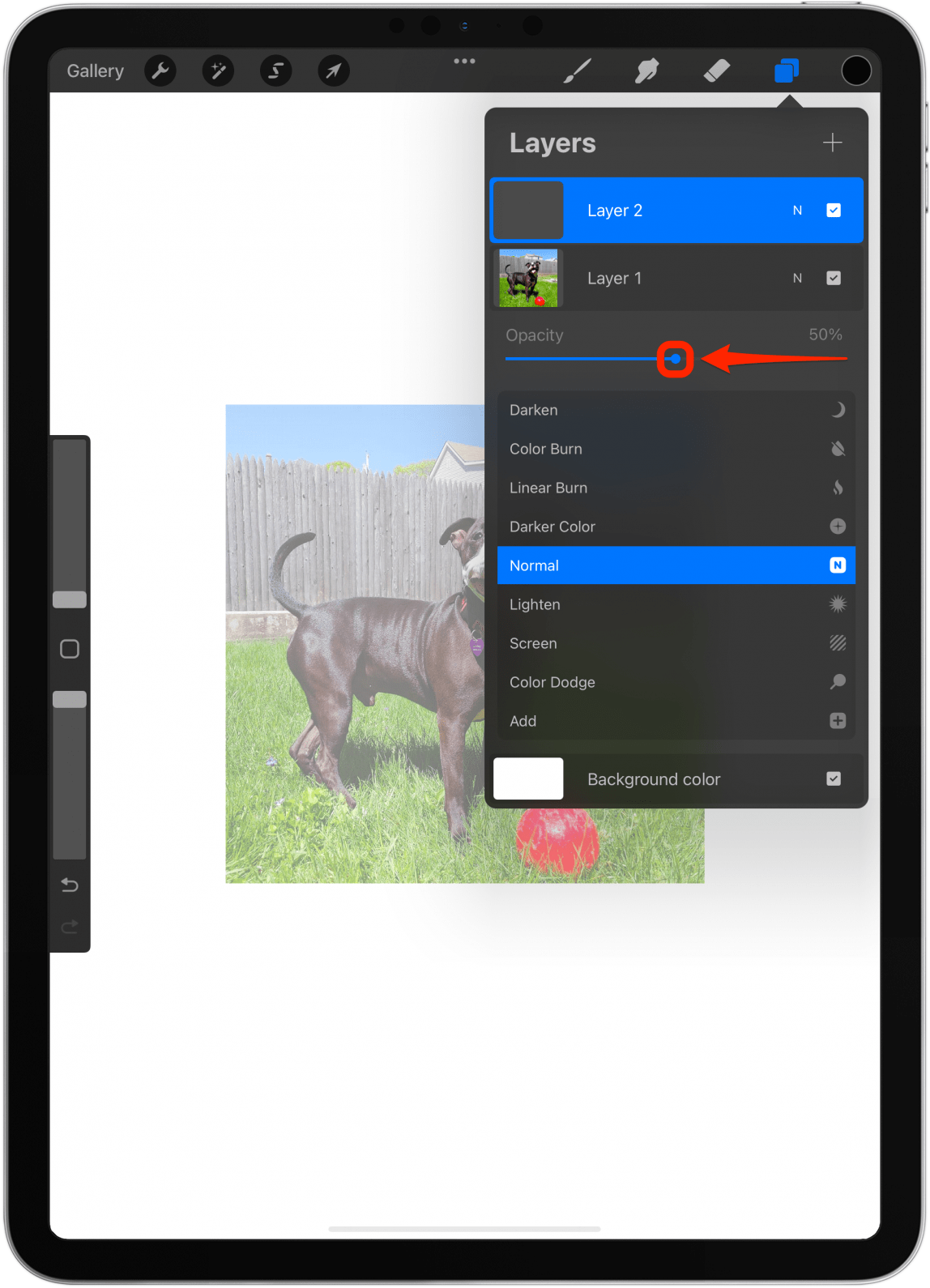 - 在不透明度下,將藍點拖動到 50%。這樣您仍然可以看到照片以及您在照片上繪製的任何內容。