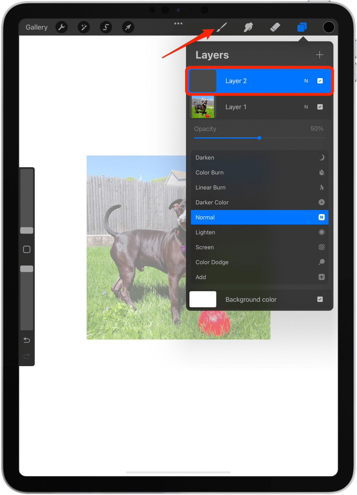 - 確保選擇空白圖層並點擊畫筆圖標。