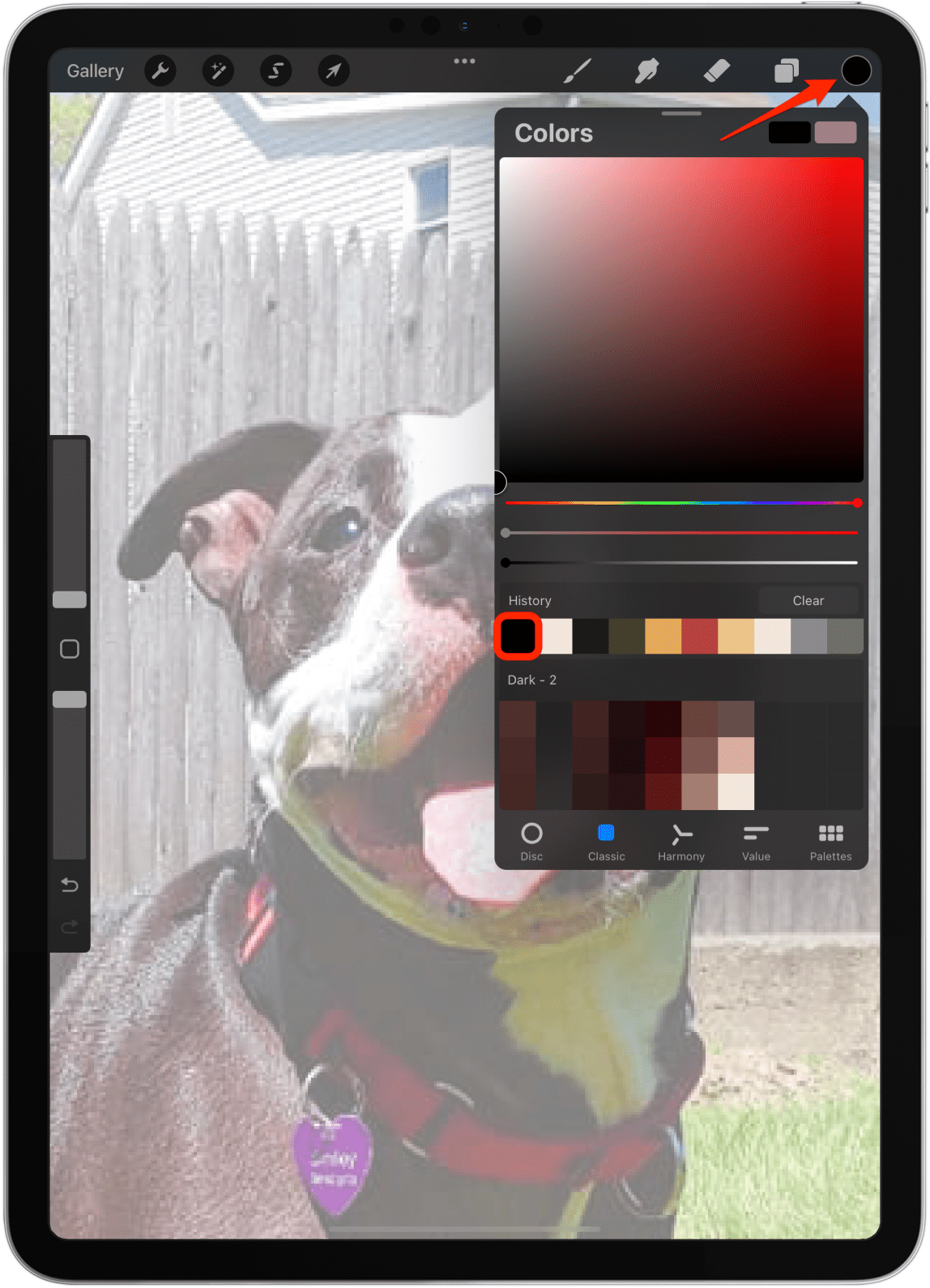 - 點擊色環以選擇要用來繪製的顏色。我會堅持使用黑色,但我會在下面鏈接的另一篇文章中介紹有關顏色的更多提示。點擊您想要使用的顏色。