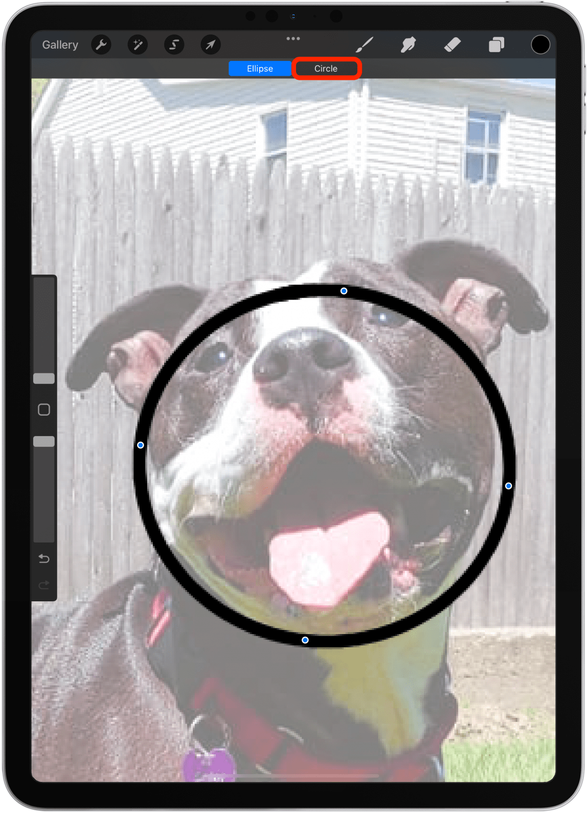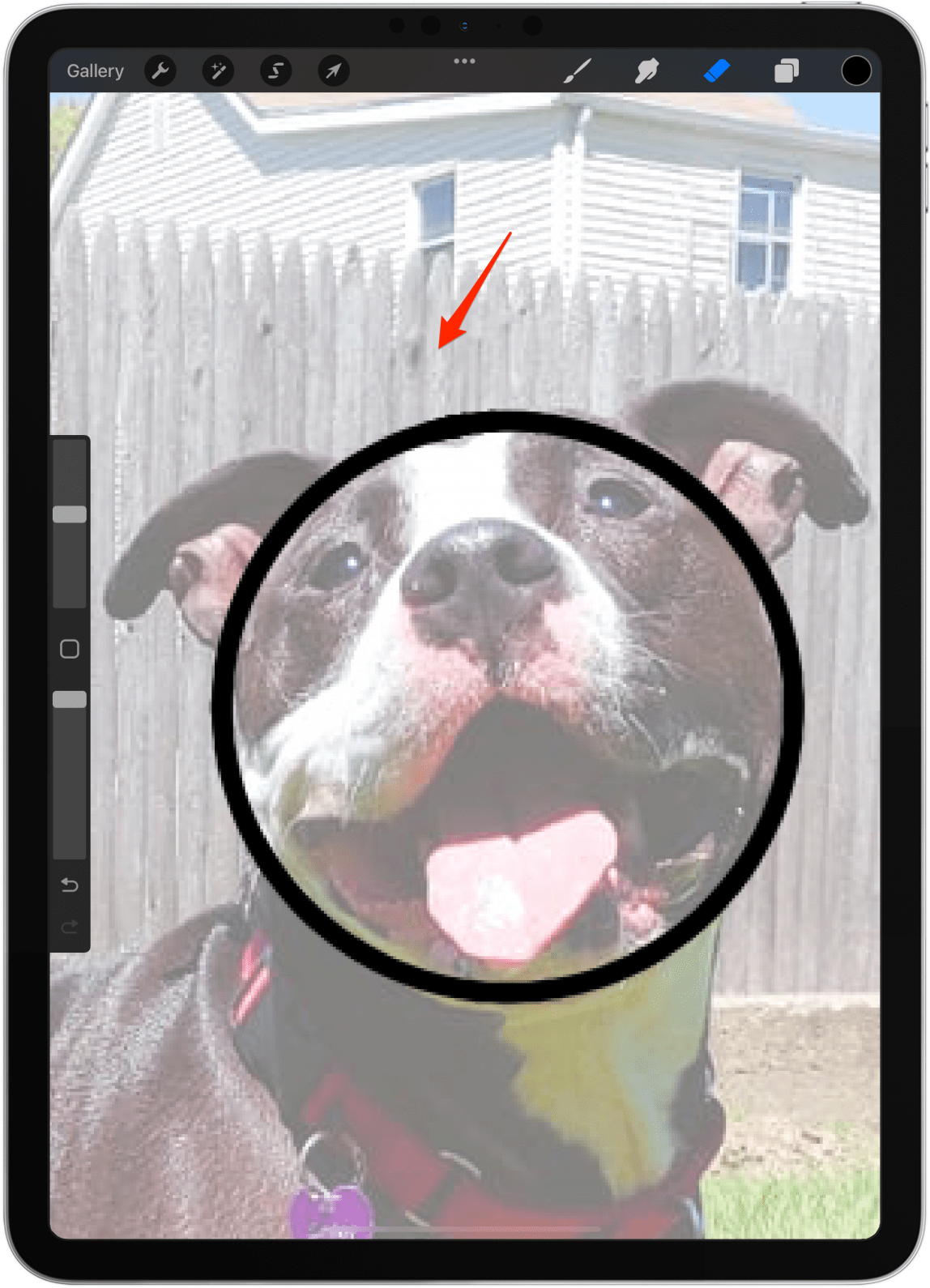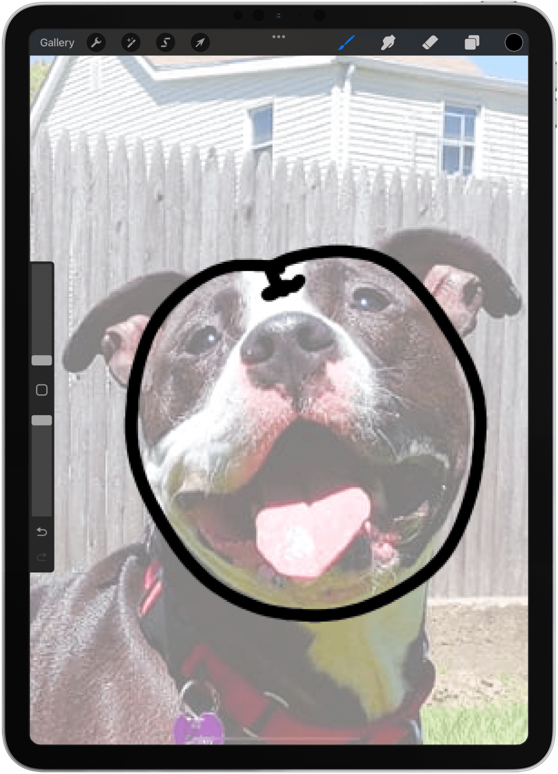 - 這張照片中的笑臉臉很圓,所以我先畫一個圓圈。為此,請使用 Apple Pencil 一次盡可能地畫一個圓,而無需將筆尖從顯示屏上移開;確保收支平衡。