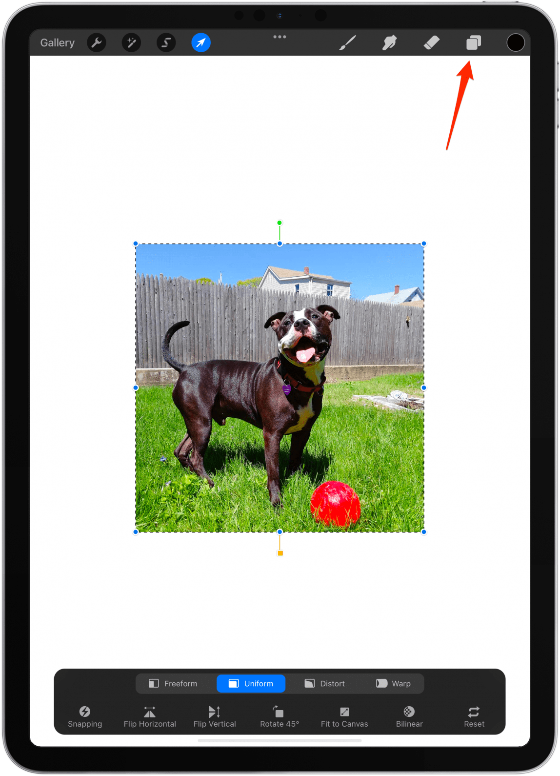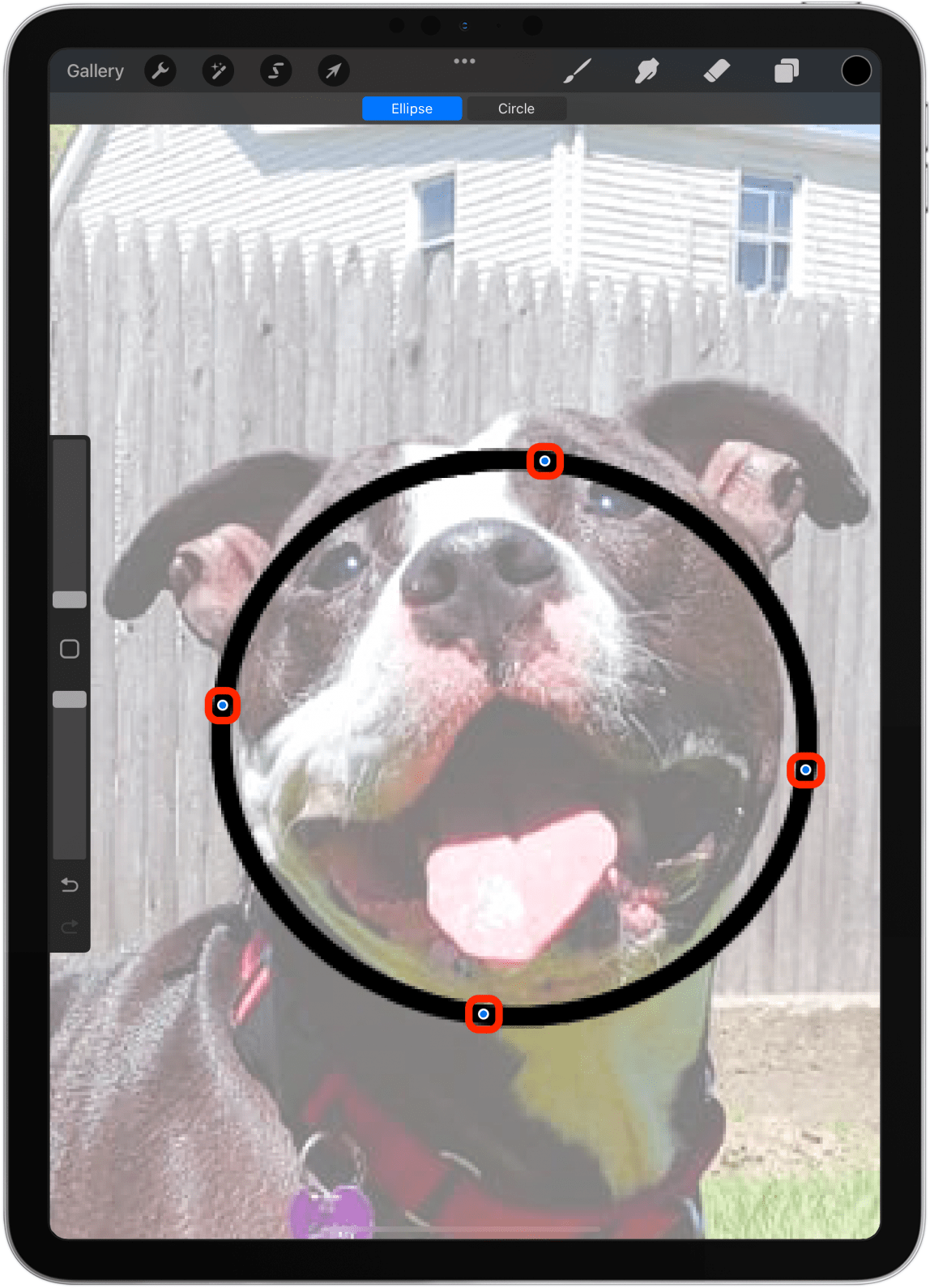 - 要重新定位形狀,請將藍點拖動到位。我將在下面鏈接的另一篇 Procreate 文章中教您另一種移動對象的方法。