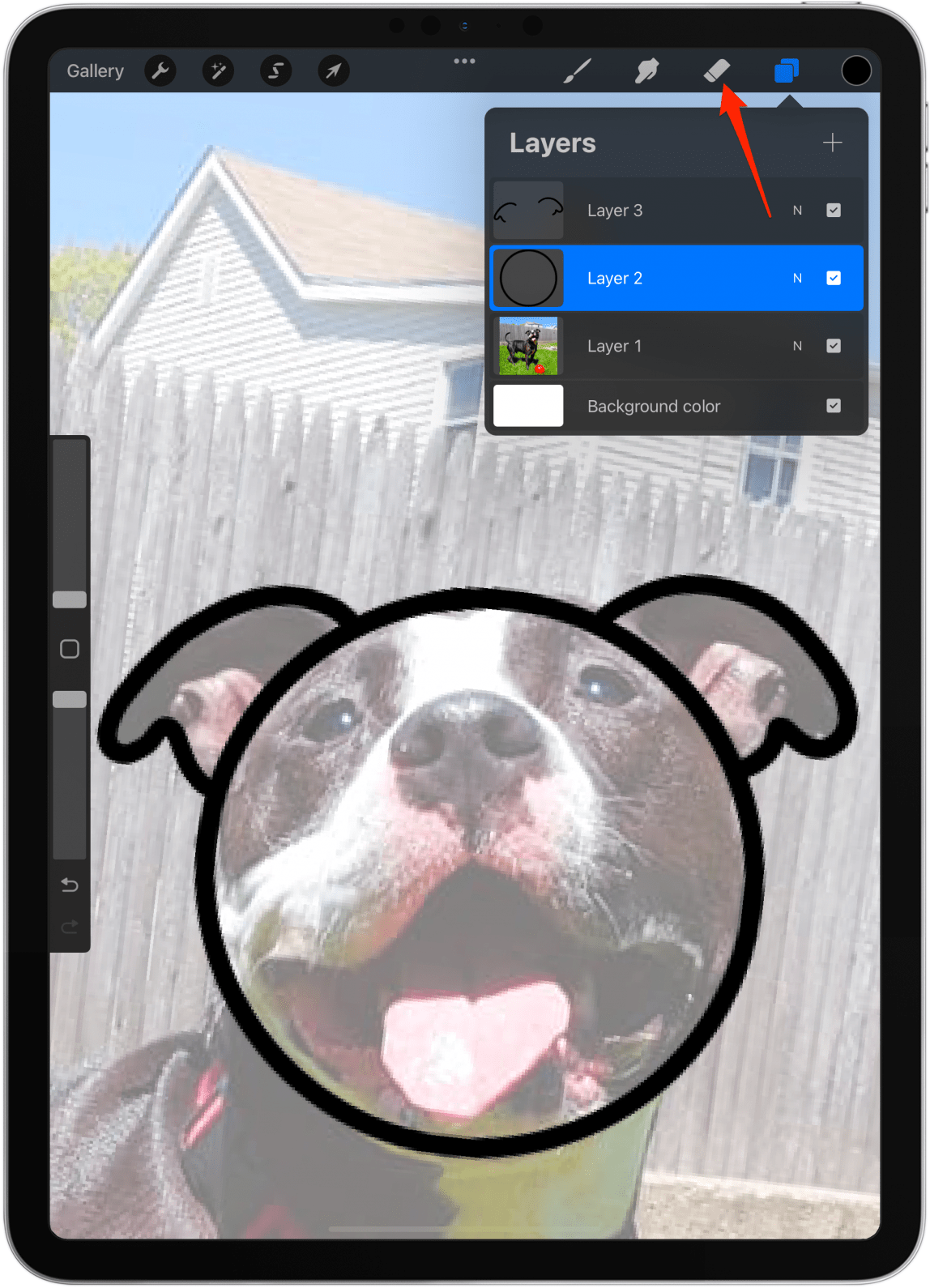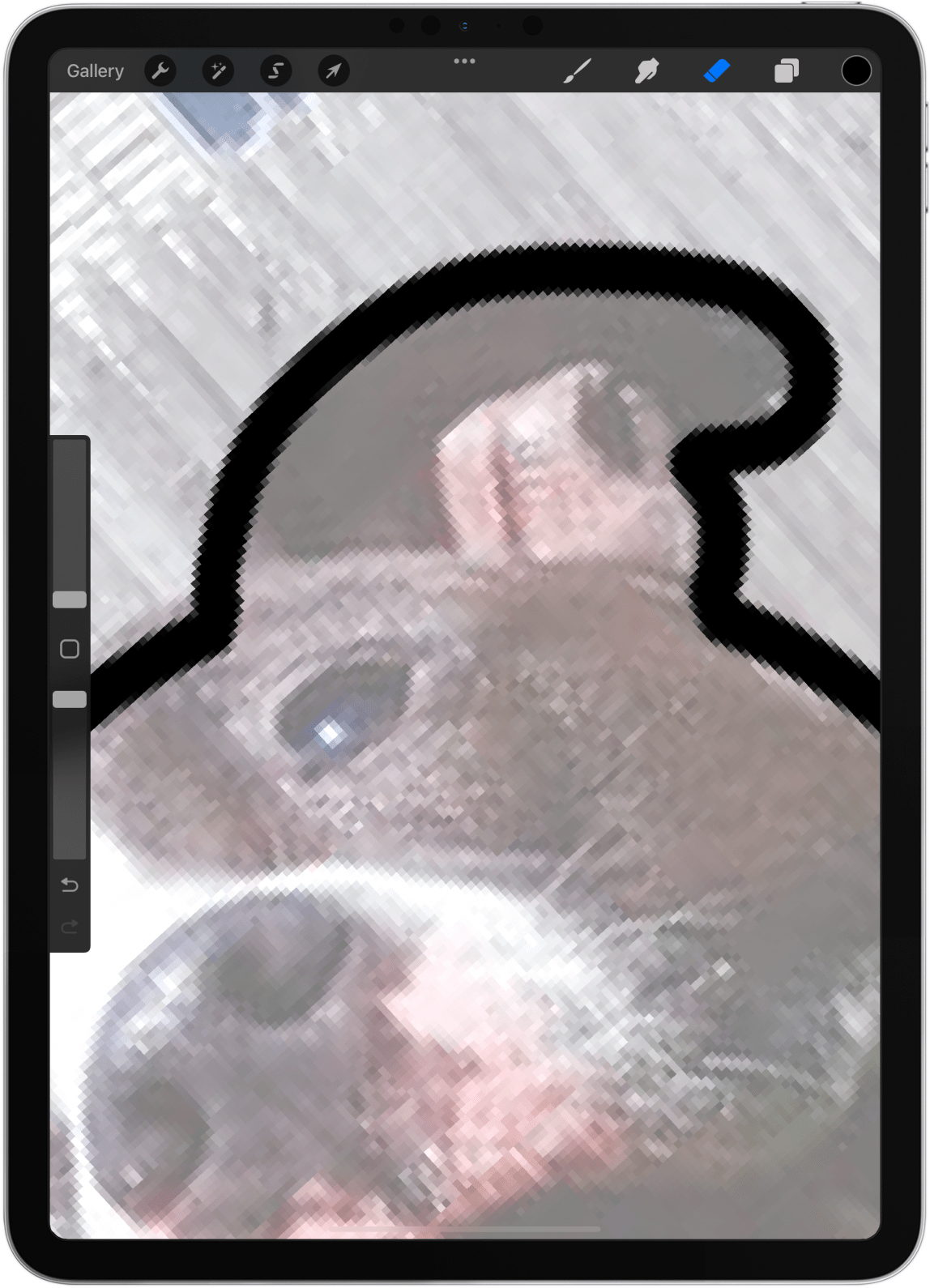 - 接下來,我將創建第二層,就像我在步驟 10 中所做的那樣,我將盡力在圓圈周圍畫出耳朵。我喜歡用兩根手指拖動圖像來不斷重新定位圖像。練習越多,你就會知道什麼最有效。