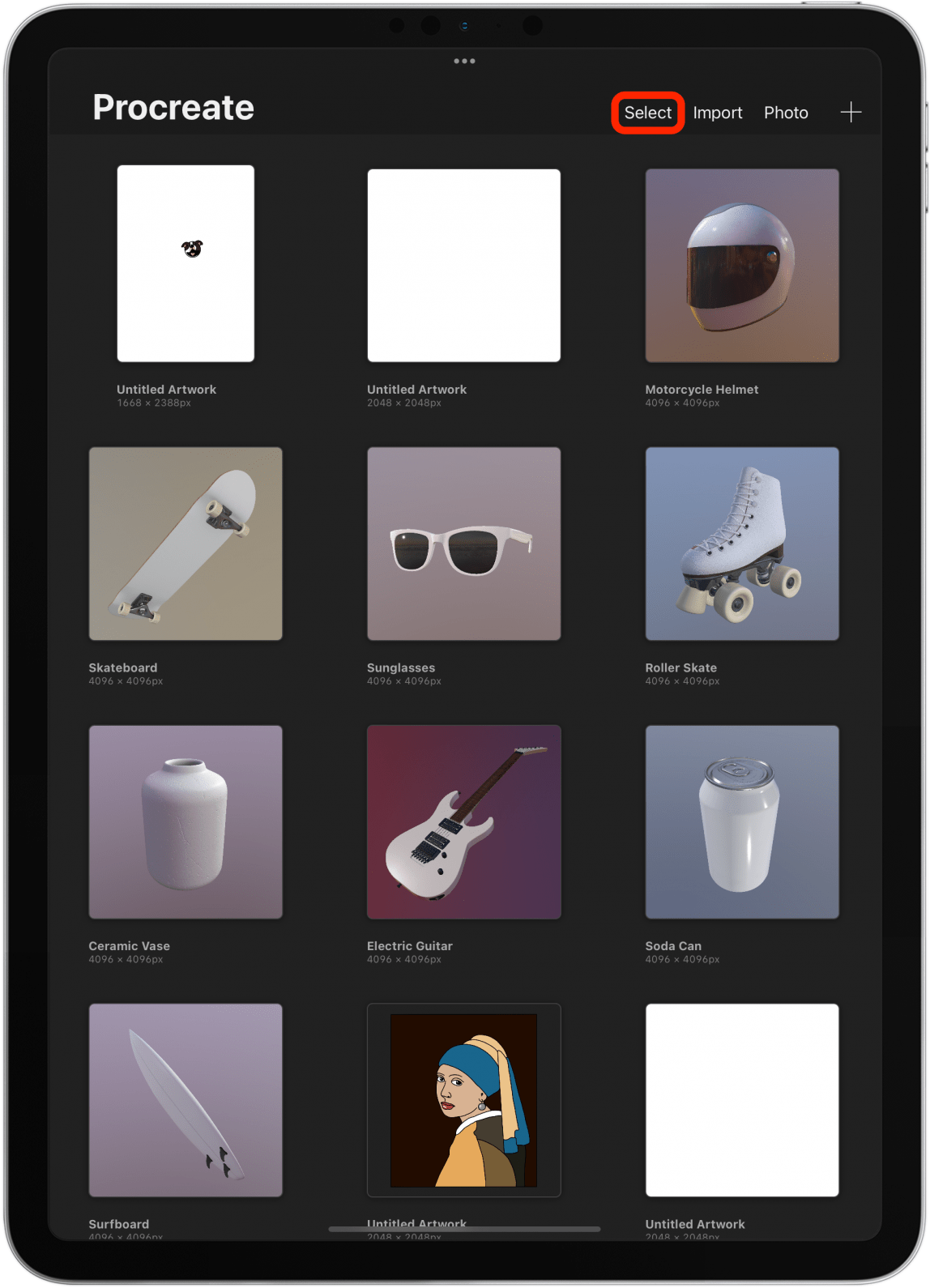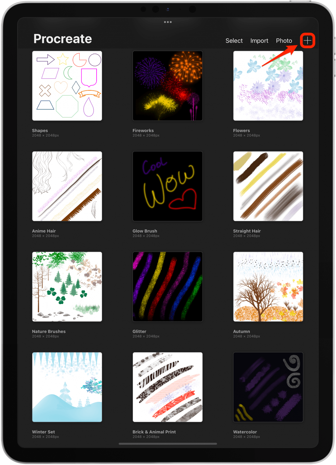- 開始屏幕稱為圖庫視圖。從這裡,您可以查看所有項目並可以開始一個新項目。輕敲+開始一個新項目。