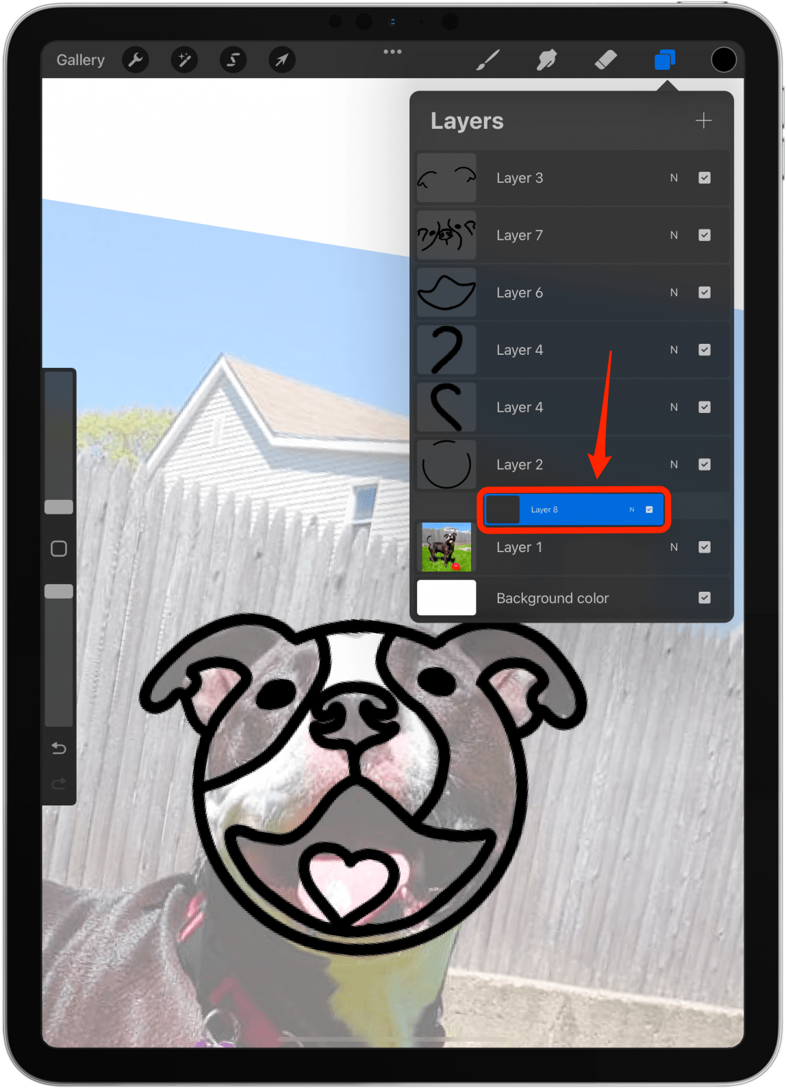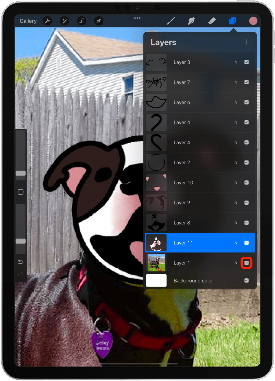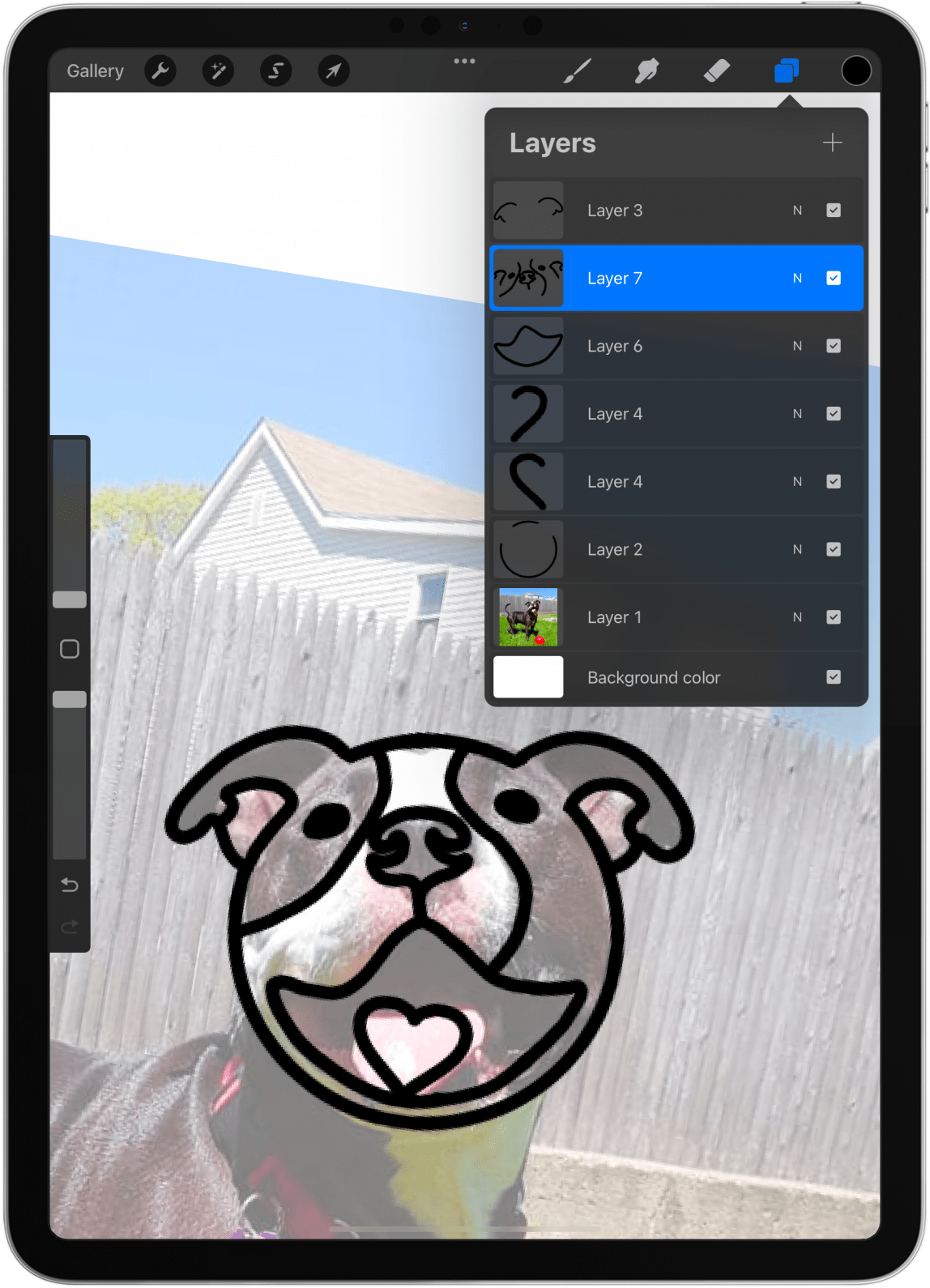 - 您可以做的還有很多;任何藝術家都會告訴你,很難判斷一個項目何時完成。我畫卡通寵物或人物的一個技巧是在眼睛裡添加一點閃爍,讓它變得生動起來。我通過在最頂部創建一個新層並輕輕敲擊眼睛,有時是鼻子,也可能是舌頭來做到這一點。這一切都取決於您的創意偏好!