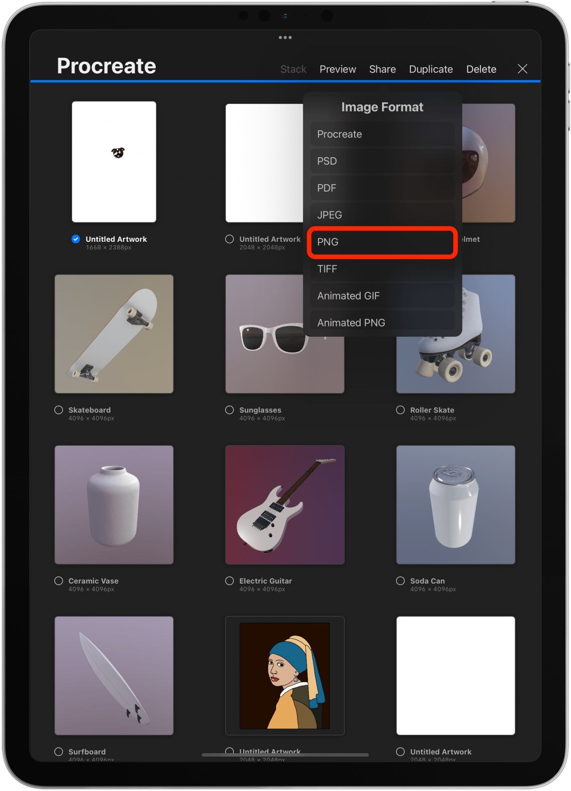 您可以使用任何與 iPad 兼容的 Apple Pencil 在 Procreate 中繪圖。您也可以用手指繪畫,但大多數藝術家更喜歡使用手寫筆。 Procreate 有一個 iPhone 版本,名為生育口袋(一次性費用 4.99 美元)。它非常適合快速繪製草圖,並針對 iPhone 用戶進行了優化,但功能較少。