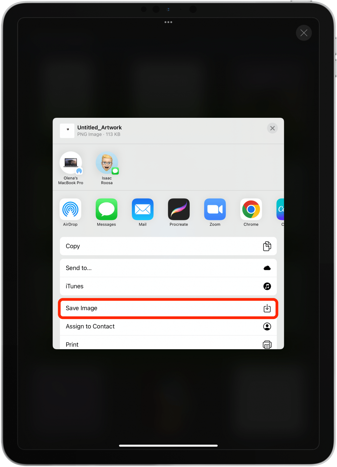 - 要保存到您的照片應用程序,請點按保存圖像。