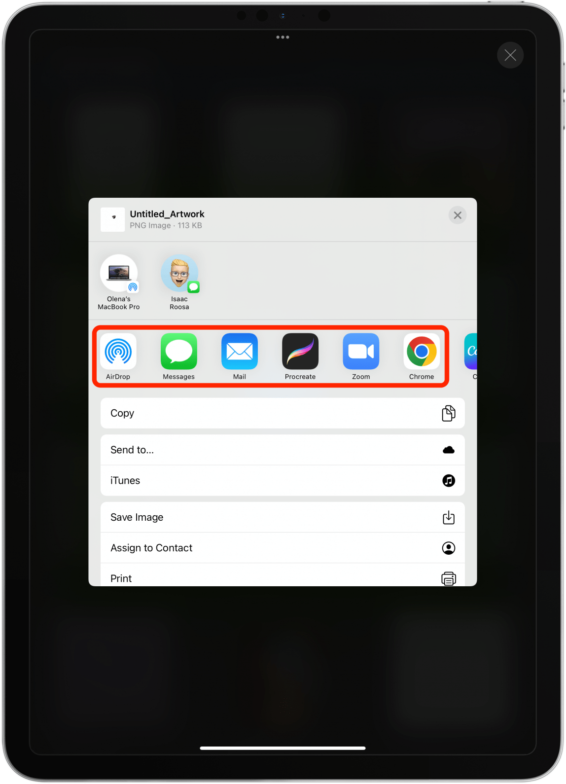 - 或者,您可以通過選擇應用程序、聯繫人或 AirDrop 來共享它。