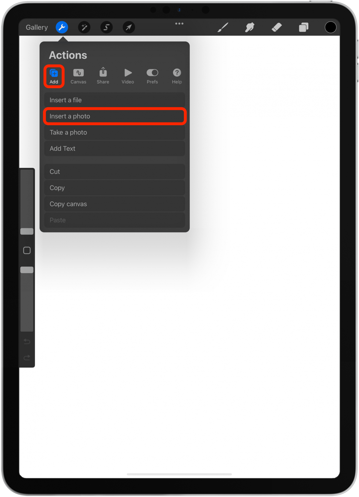 - 我發現通過描摹現有的藝術品或照片來繪畫是最簡單的。要插入圖像,請點擊扳手圖標。