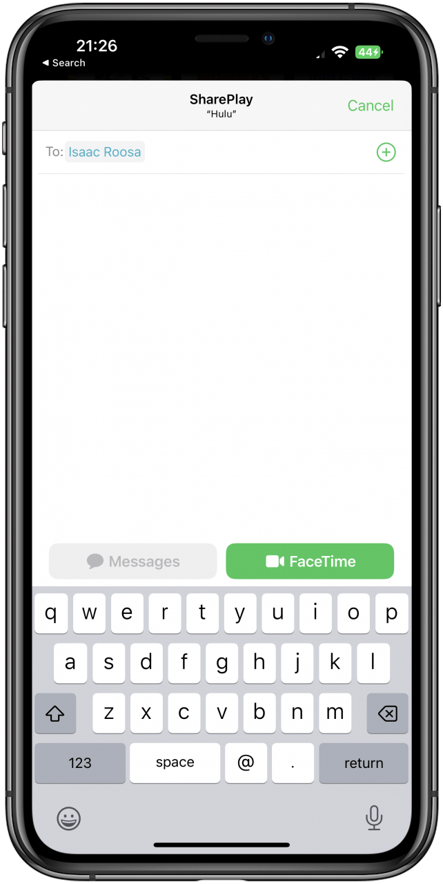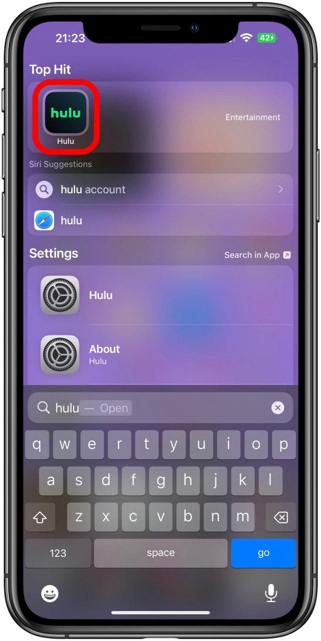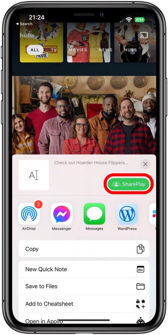 - 要使用 SharePlay,您必須首先打開您想要觀看或收聽的應用程序。對於本示例,我將使用 Hulu。