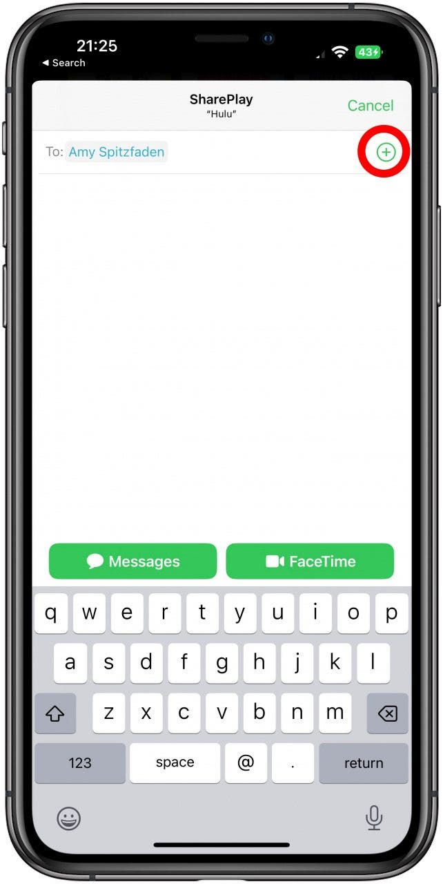- 選擇一個聯繫人。如果您在建議列表中沒有看到它們,請點擊加號圖標或輸入它們的名稱。