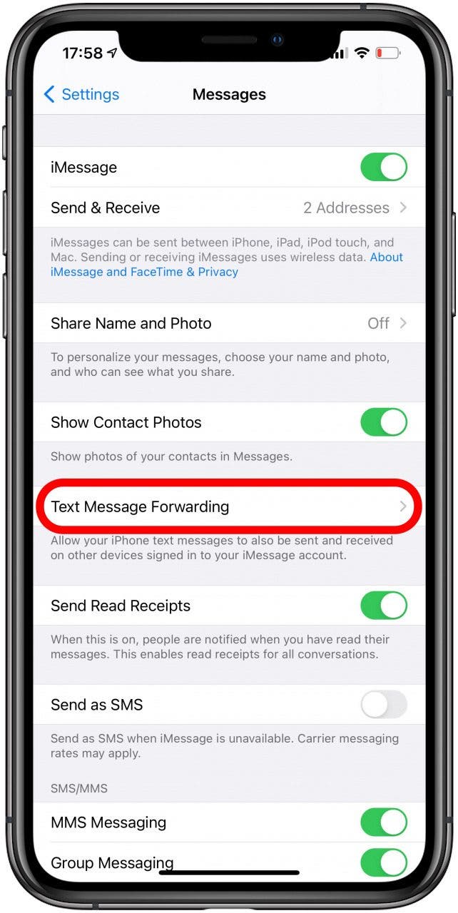 要解決此問題,您需要啟用短信轉發: