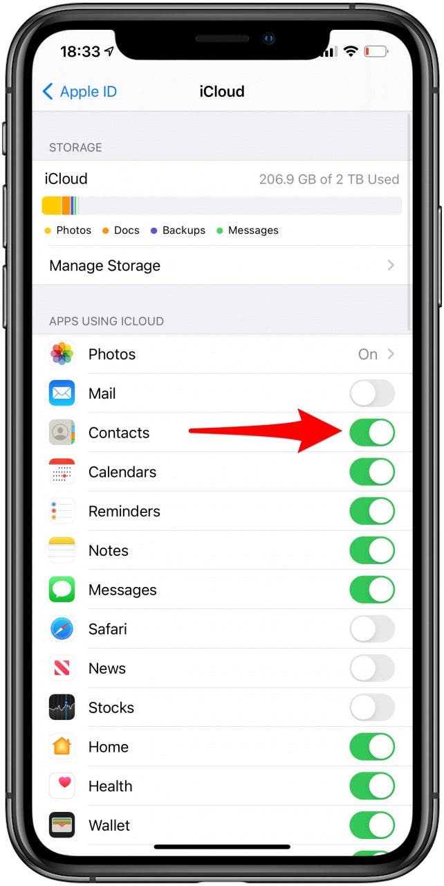 由於您的聯繫人主要存儲在 iPhone 上,因此您需要確保它們也從您的手機同步到 iCloud。