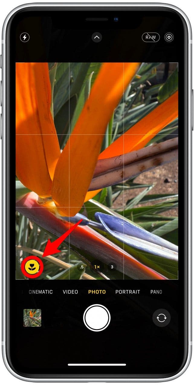 如果您不小心進入微距模式,可以點擊微距圖標將其關閉。如果您不拉開與拍攝對象之間的距離,它可能會自動切換回來。
