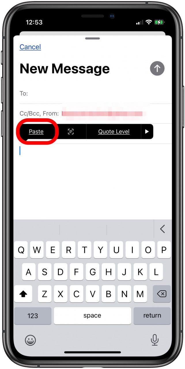 - 要粘貼複製的照片,請開始寫一封新電子郵件。點擊並按住電子郵件正文並選擇粘貼。