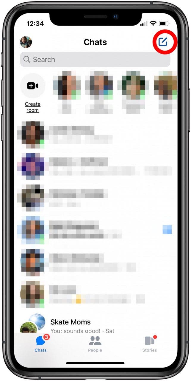 - 打開 Messenger 應用程序並點擊新消息圖標在顯示屏的右上角。