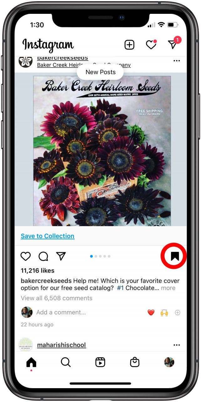 - 點擊書籤圖標位於頁面底部要保存的照片下方。