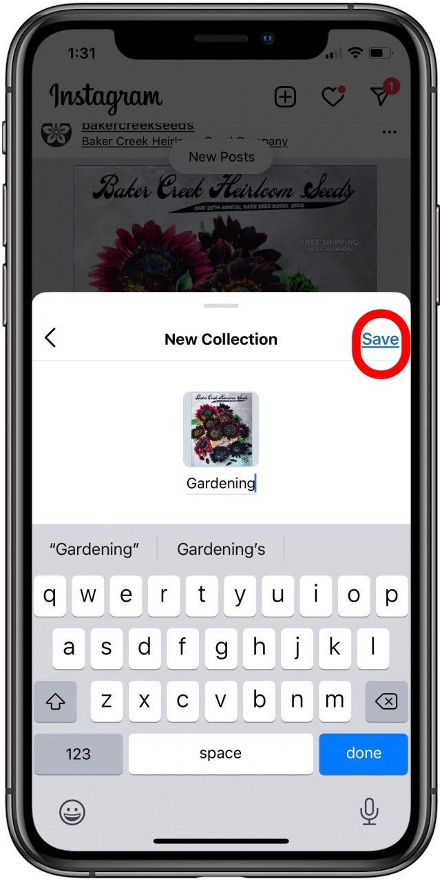 - 選擇您已創建的集合,或點擊加號創建此圖像並將其添加到新集合中。輕敲節省。