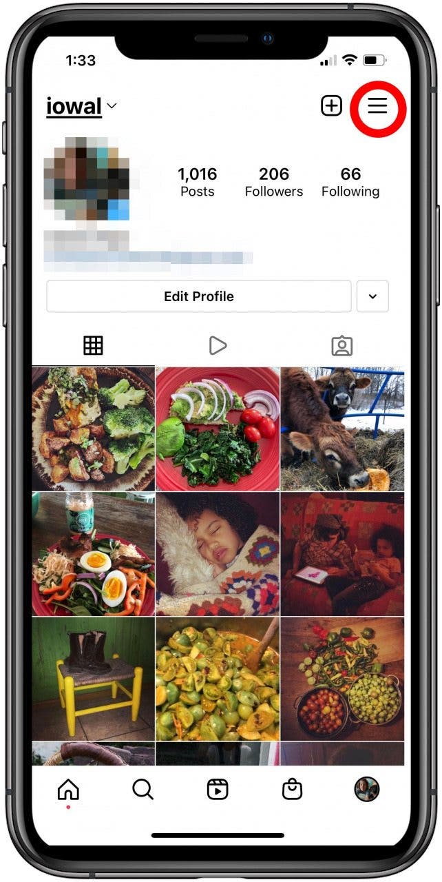 - 返回您的個人資料頁面並點擊“漢堡包圖標”。