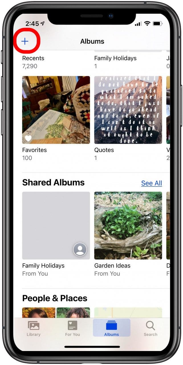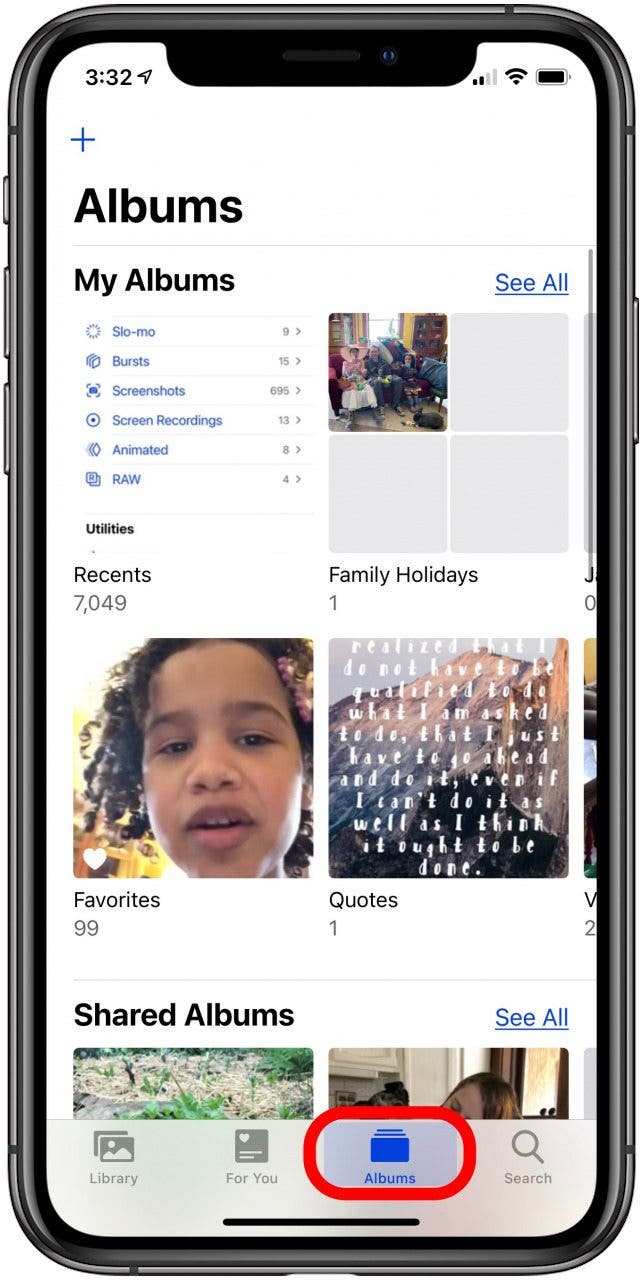 - 打開照片應用程序並點擊相冊選項卡在頁面底部。
