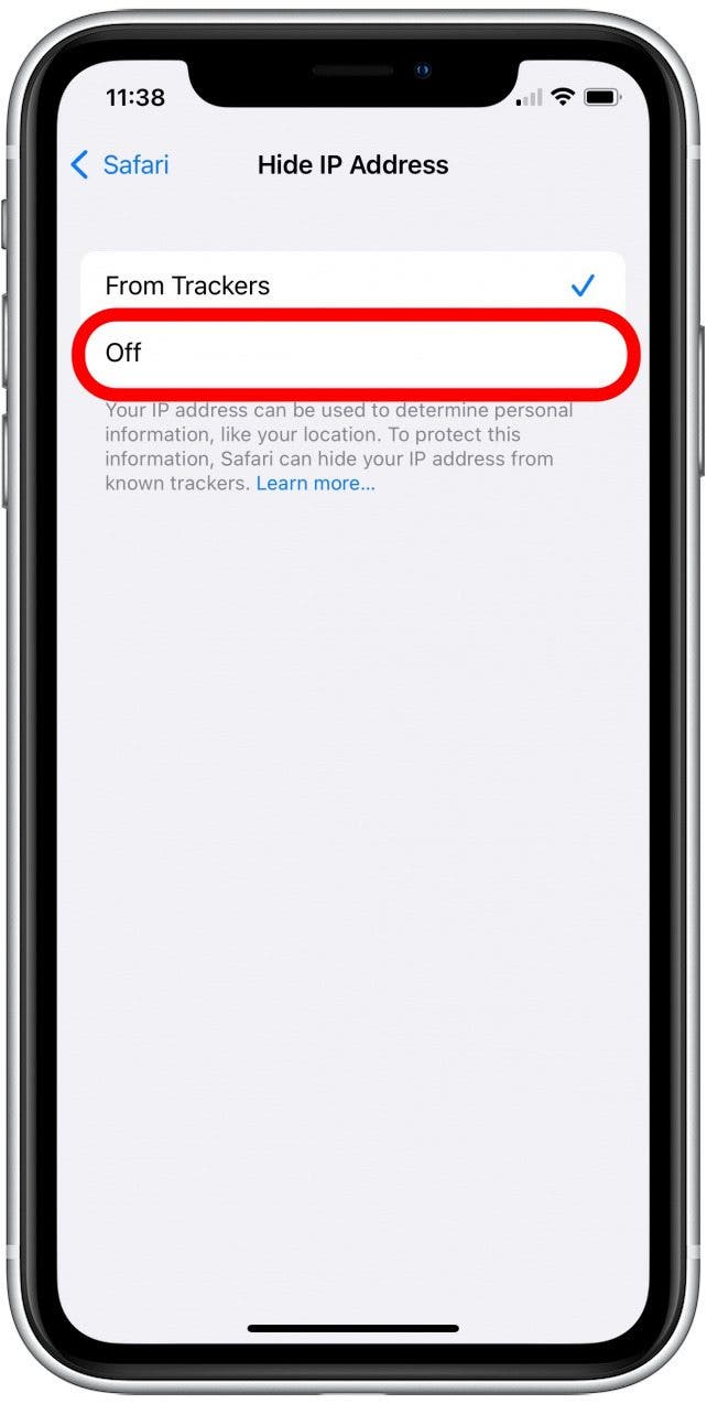 是?隱藏 IP 地址功能是上一節中討論的更大的專用中繼功能的一部分。如果在 iCloud 中禁用專用中繼無法解決您的問題,我建議您關閉隱藏 IP 地址功能。方法如下: