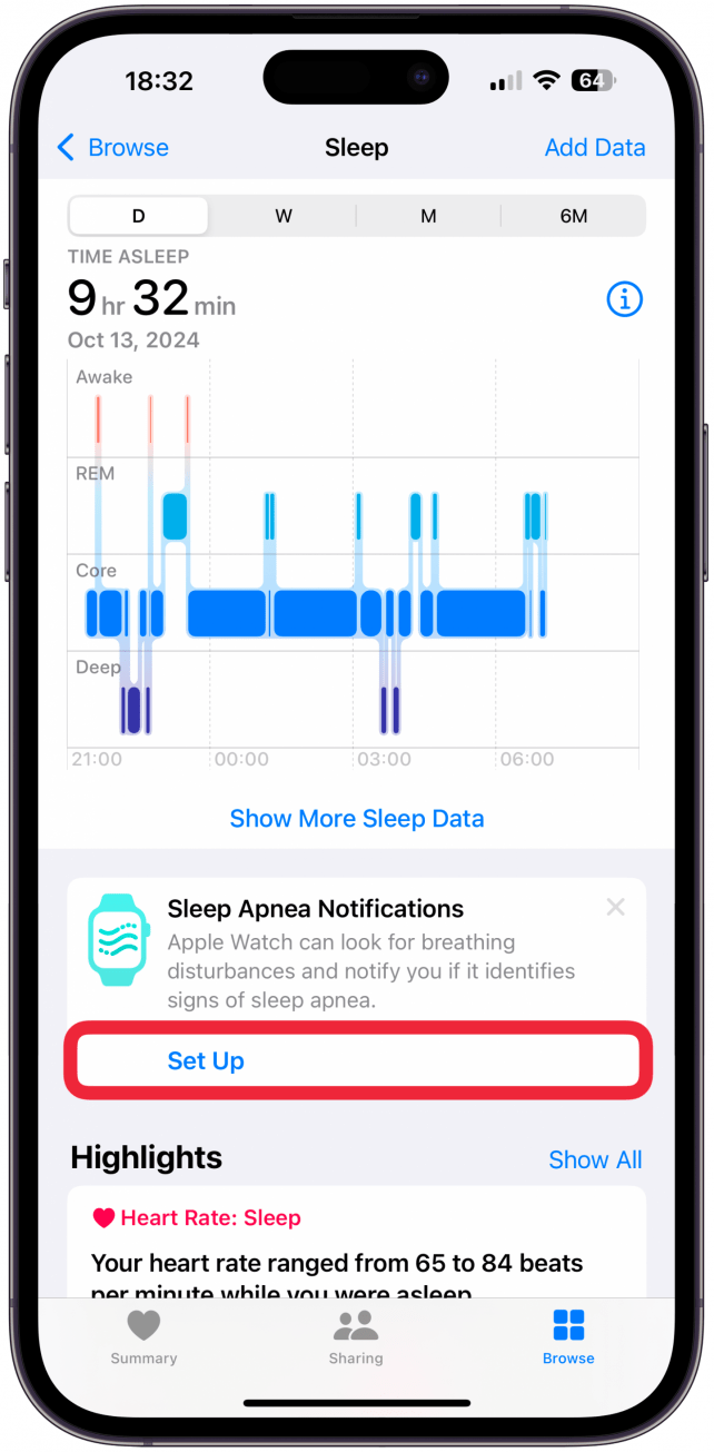 就是這樣!沒有特定的睡眠呼吸暫停應用程序,但您可以在“健康”應用程序中跟踪任何干擾。從現在開始,如果檢測到任何呼吸障礙,您將收到通知。請記住,雖然 Apple Watch 可能能夠檢測睡眠呼吸暫停,但您必須去看醫生才能獲得正確的診斷並接受任何必要的醫療護理。