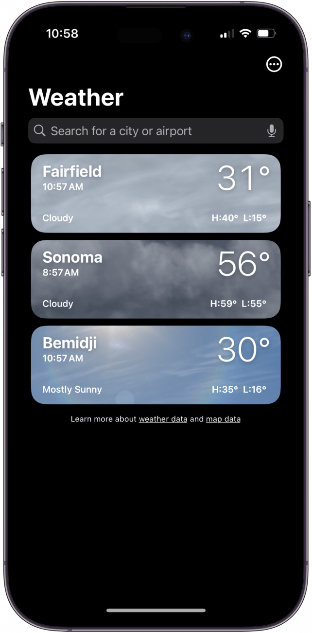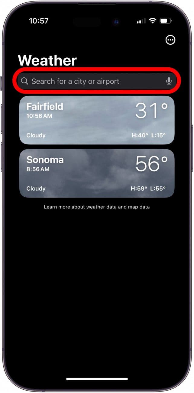 - 如何重置 iPhone 上的默認天氣位置?要更改默認天氣位置,請打開天氣應用程序,點擊菜單,然後在搜索欄中查找並選擇新的默認城市。