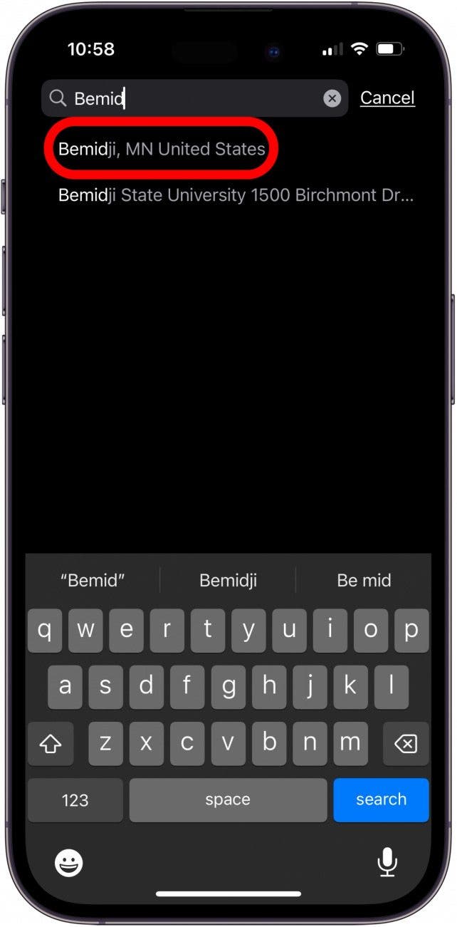 - 要在 iPhone 上設置默認天氣位置,請打開地圖應用程序,點擊菜單圖標,在搜索欄中輸入城市,從選項中選擇城市,然後點擊添加。
