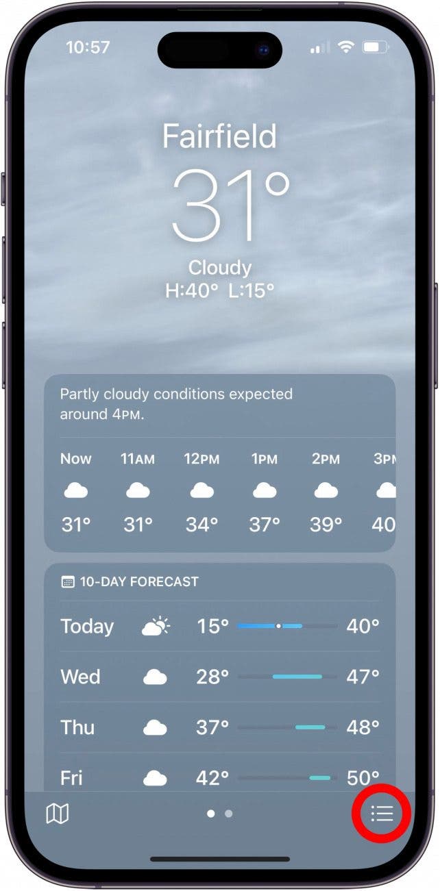- 向下滾動並點擊天氣。