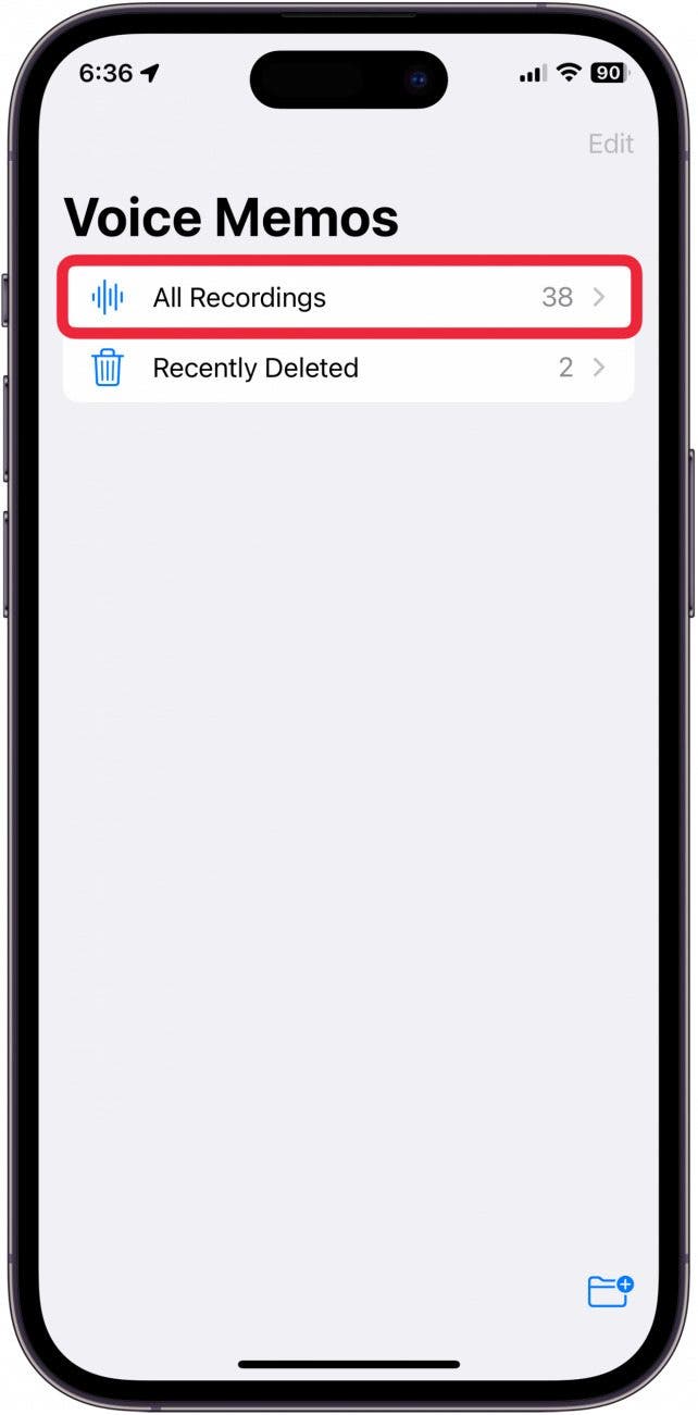 - 輕敲所有錄音。 (如果您已位於“所有錄音”屏幕,則可以跳至步驟 3。)