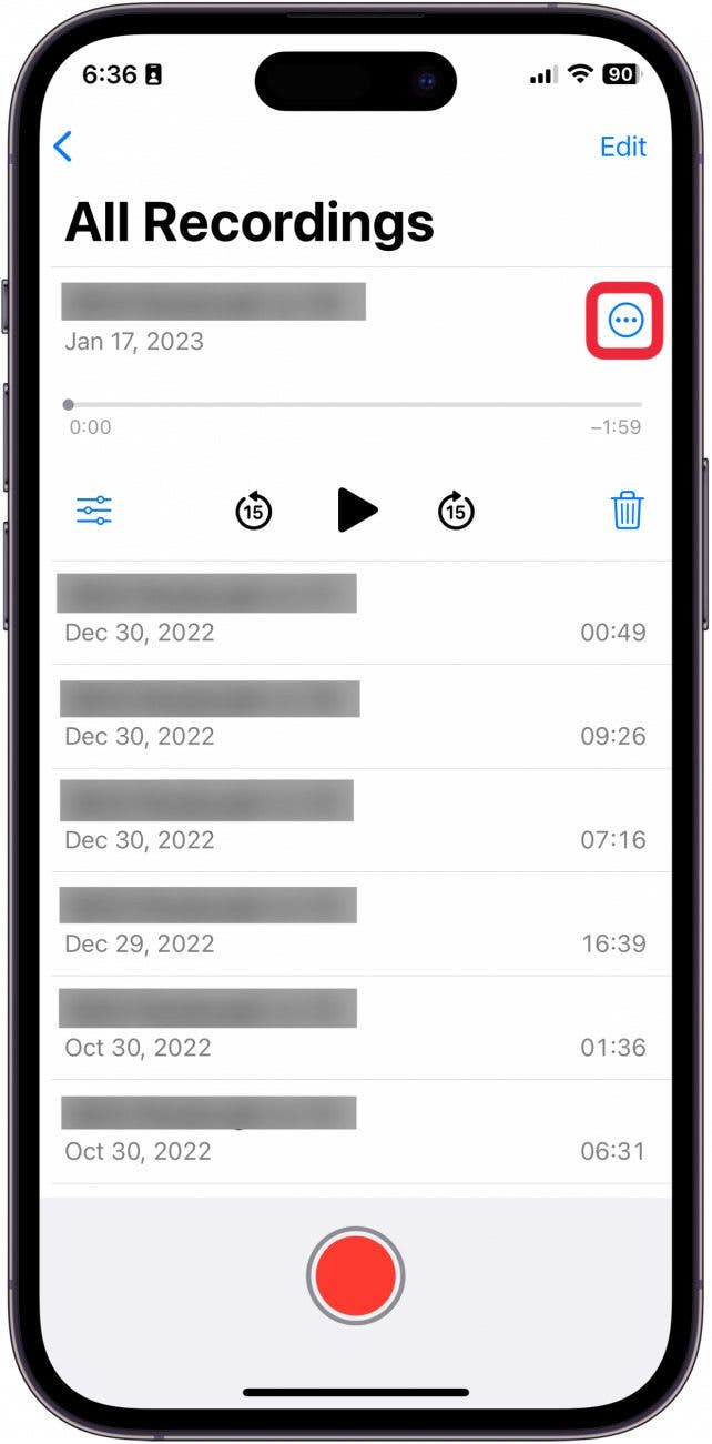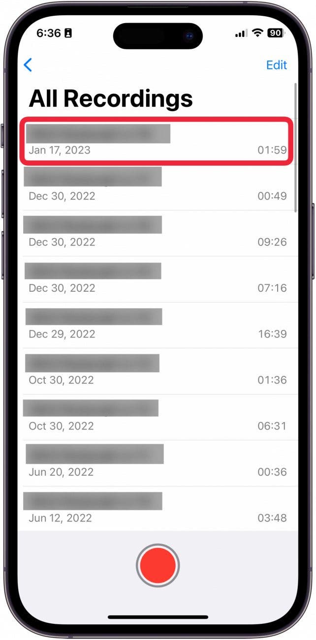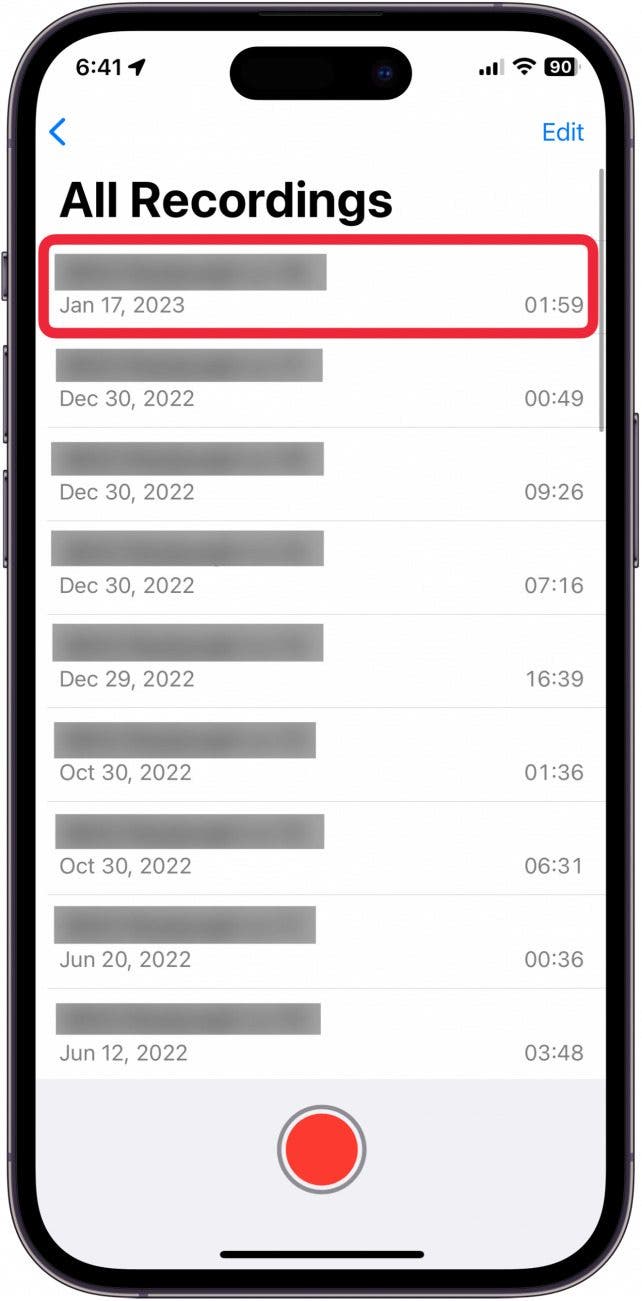 - 您應該會在下面看到您的 iPhone 錄製的語音備忘錄所有錄音。
